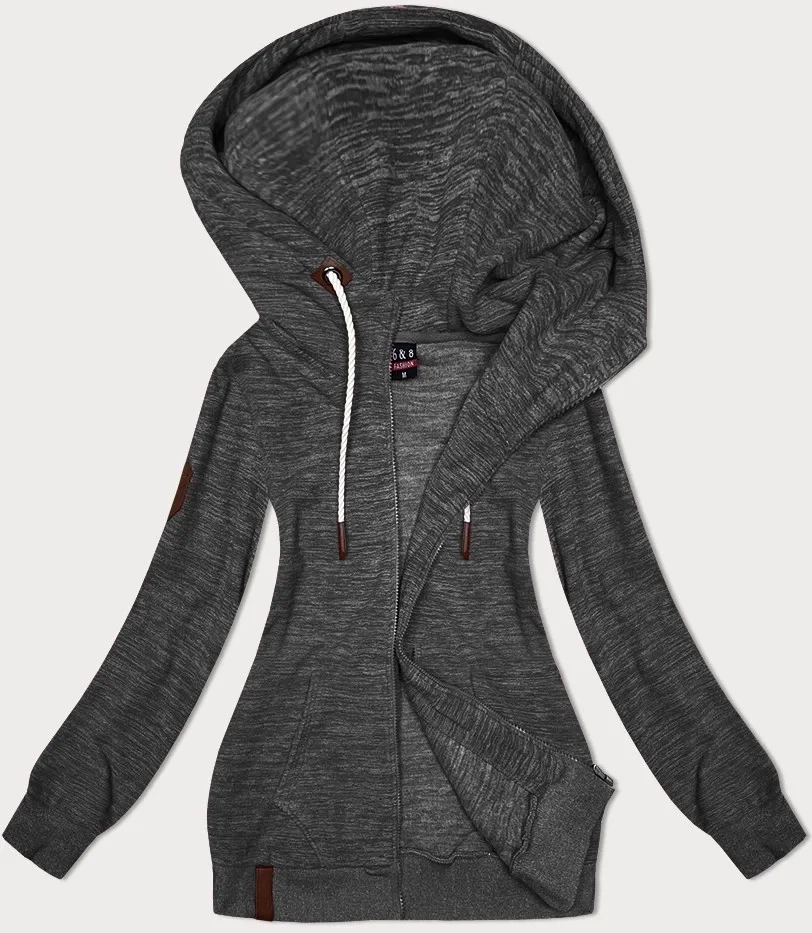 Dámská mikina v grafitové melanžové barvě s kapucí model 19664152 - 6&8 Fashion