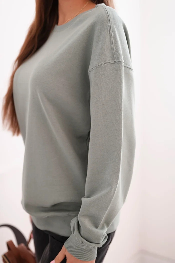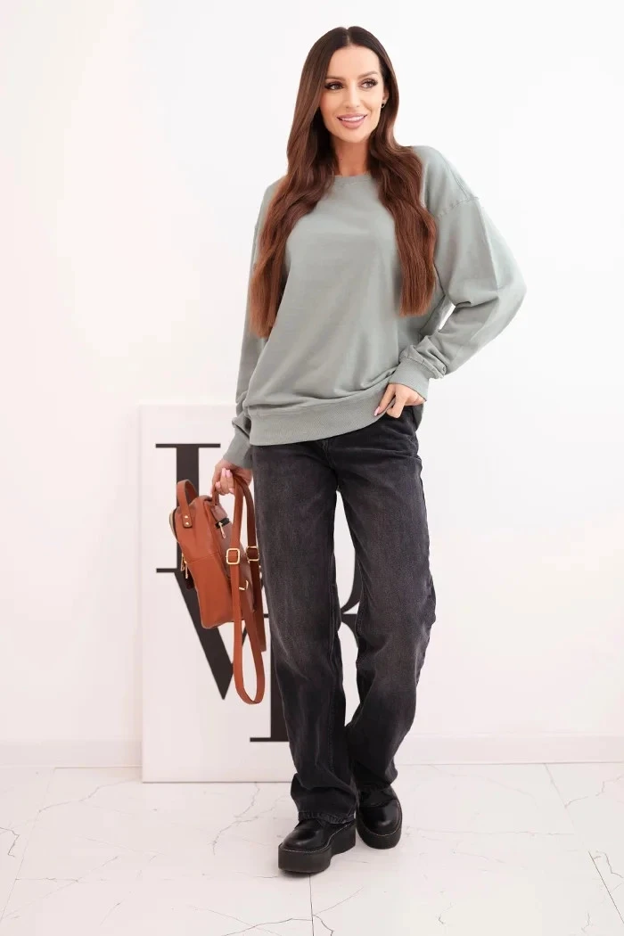 Dámská mikina z bavlny basic s kulatým výstřihem tmavě mátová