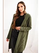 Dámská mikina z bavlny s kapucí a prodlouženým předním dílem khaki