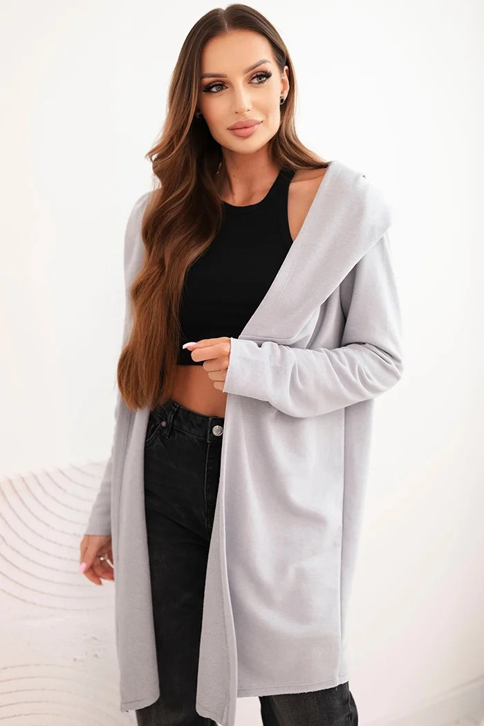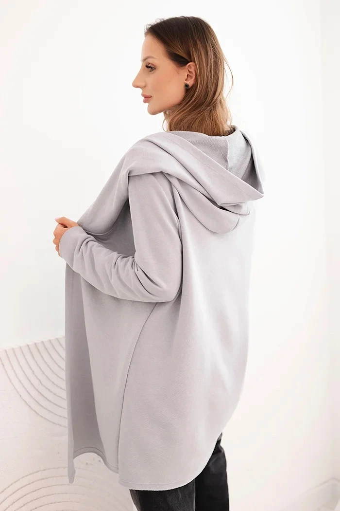Dámská mikina z bavlny s kapucí a prodlouženým předním dílem šedá