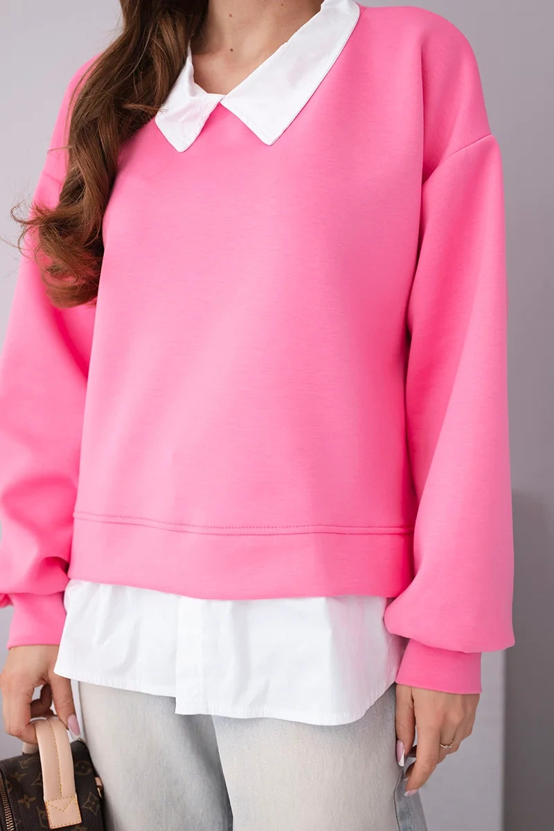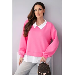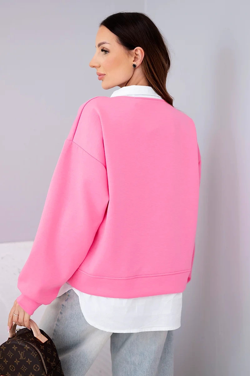 Dámská mikina z viskózy a s vsadkou cukrově růžová model 22014159 - K-Fashion