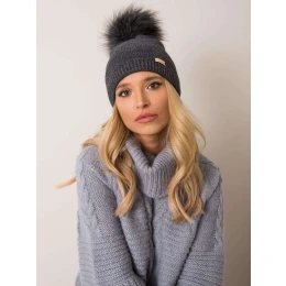 RUE PARIS Tmavě šedá čepice s bambulí Polský výrobek