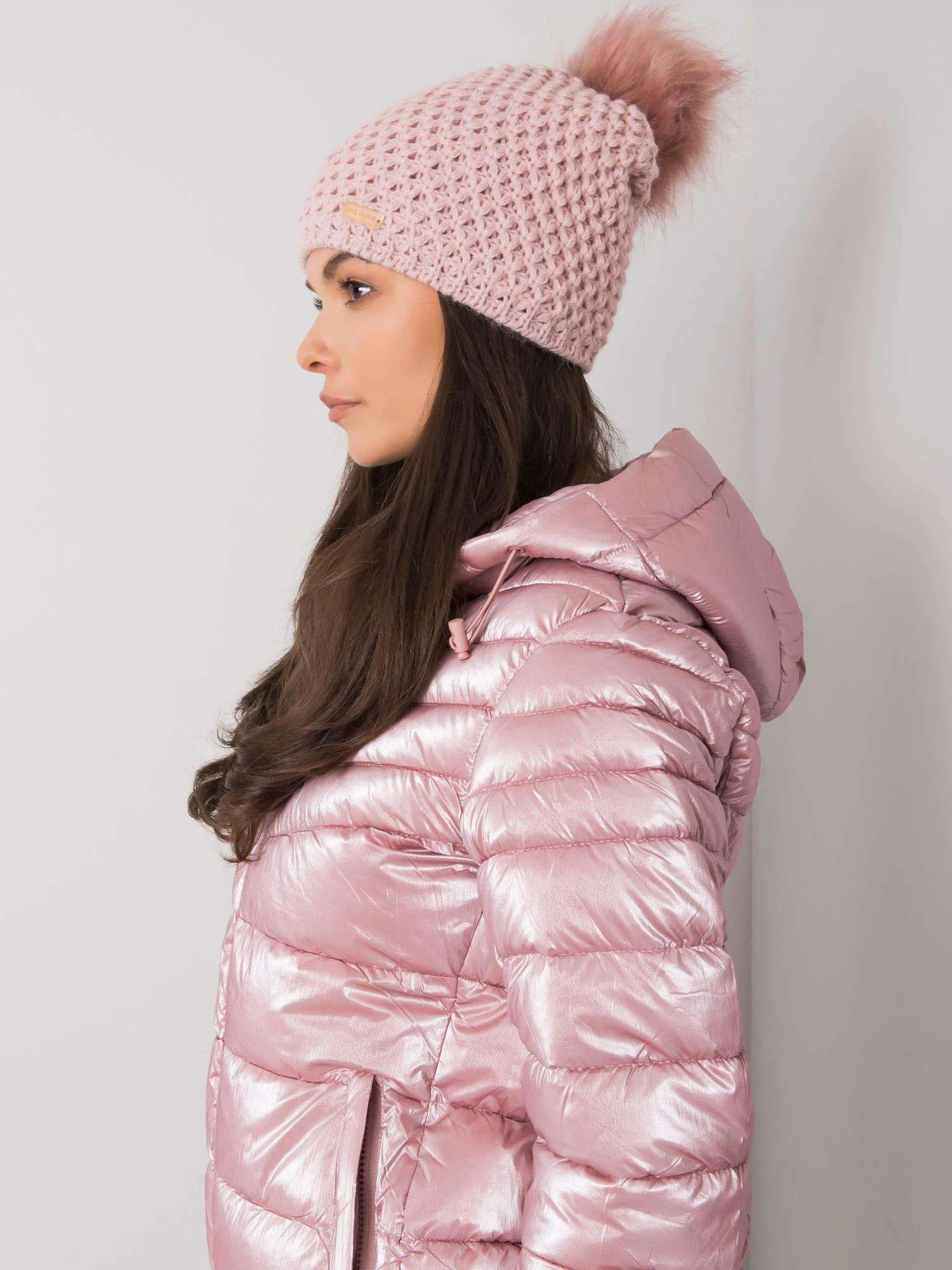 Dámská světle růžová čepice s bambulí Polský výrobek