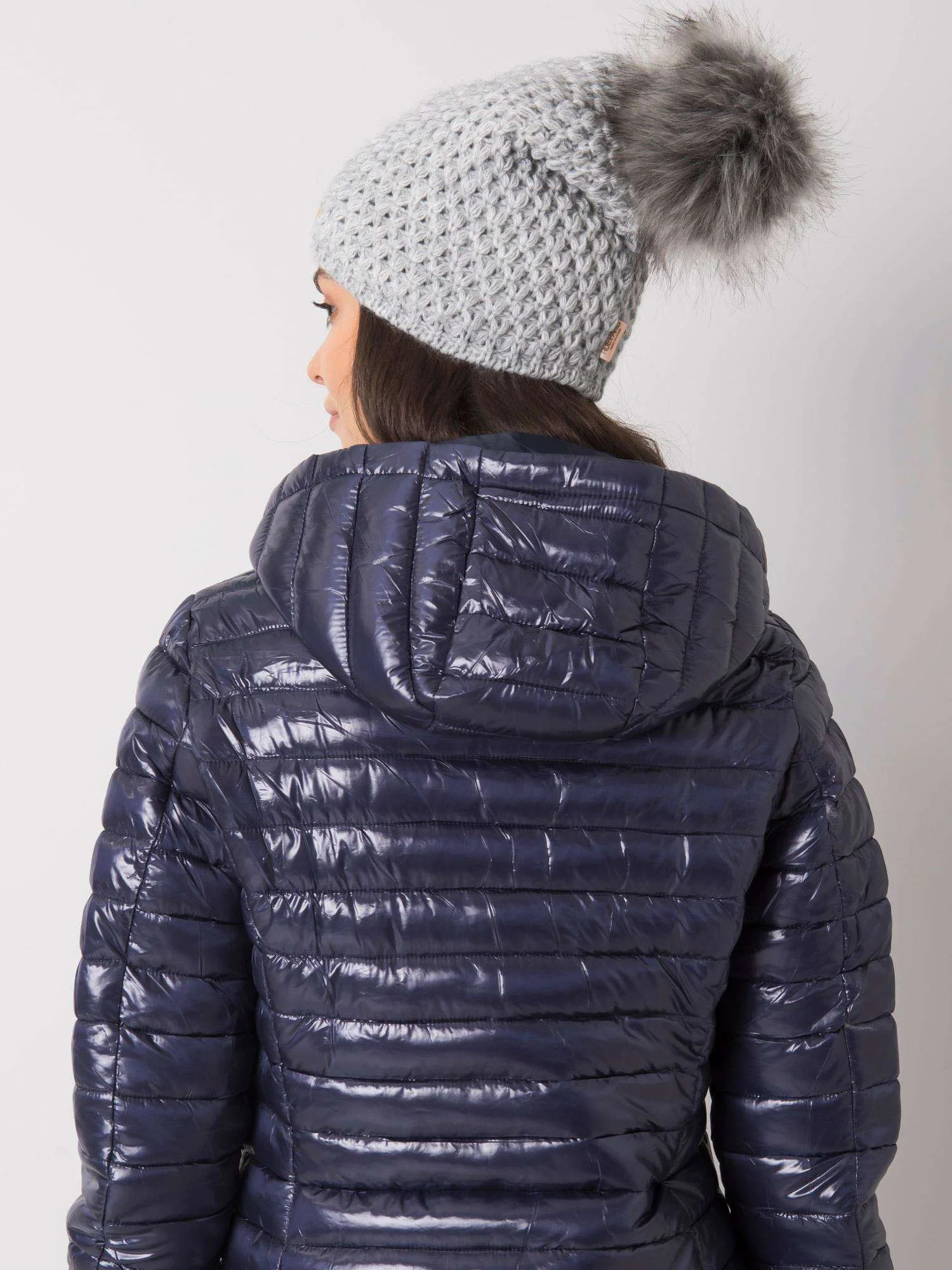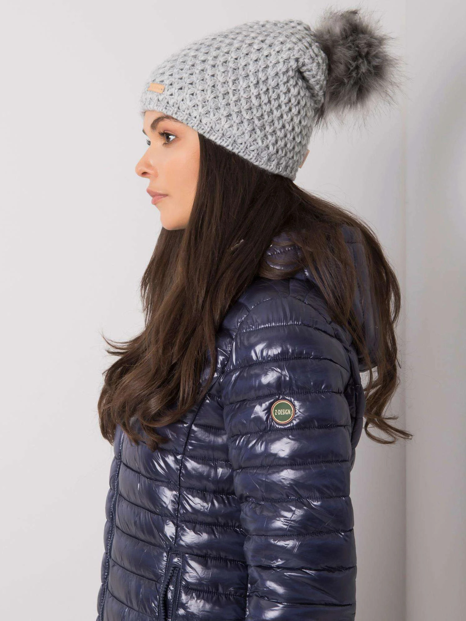 Dámská šedá čepice s bambulí Polský výrobek