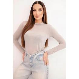 Dámská model 21777061 blůza s jemným rolákem a dlouhým rukávem tmavě béžová - K-Fashion