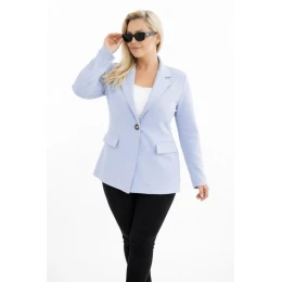 Elegantní a pohodlná dámská blazer z viskózy plus size, která dokonale spojuje stylový vzhled s komfortem nošení. Vyrobena z příjemné na dotek směsi viskózy, polyesteru a elastanu, skvěle se přizpůsobí postavě, neomezuje pohyby a hodí se jak na každodenní nošení, tak do práce či na schůzky. Model zapínaný na jeden knoflík, s klasickým límcem a ozdobnými klopami u kapes – dodává šarm každé stylizaci.