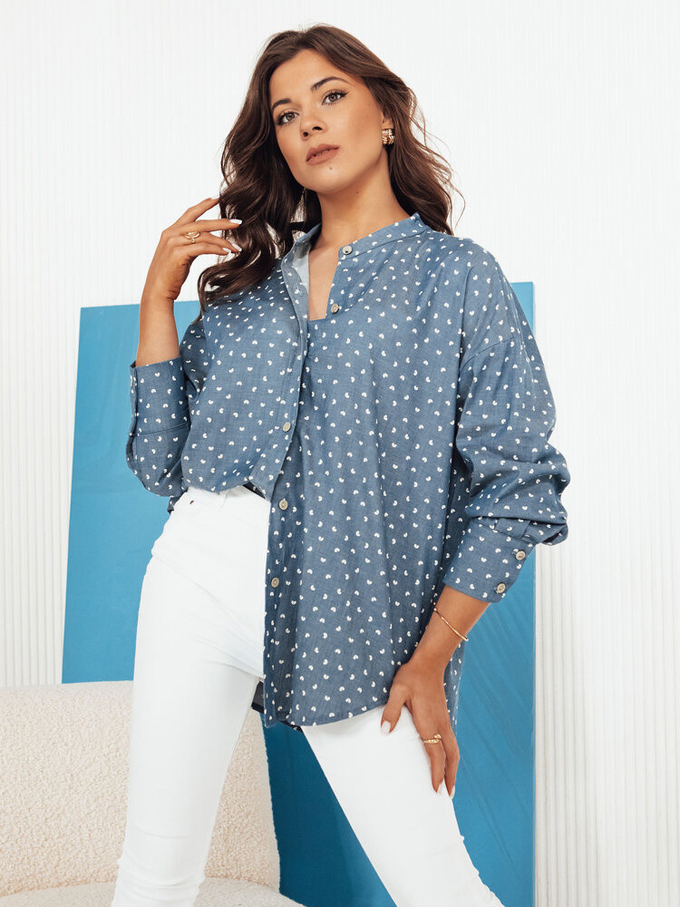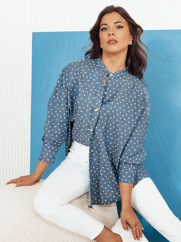 Košile PISAT podtrhuje ženskou eleganci s jemností. Výrazný stojatý límeček dodává eleganci, zatímco drobný vzor srdíček vnáší do každodenního oblečení nádech romantiky. Dlouhý střih košile nabízí mnoho možností stylingu. Tato košile je jedinečnou kombinací pohodlí a sofistikovaného designu.