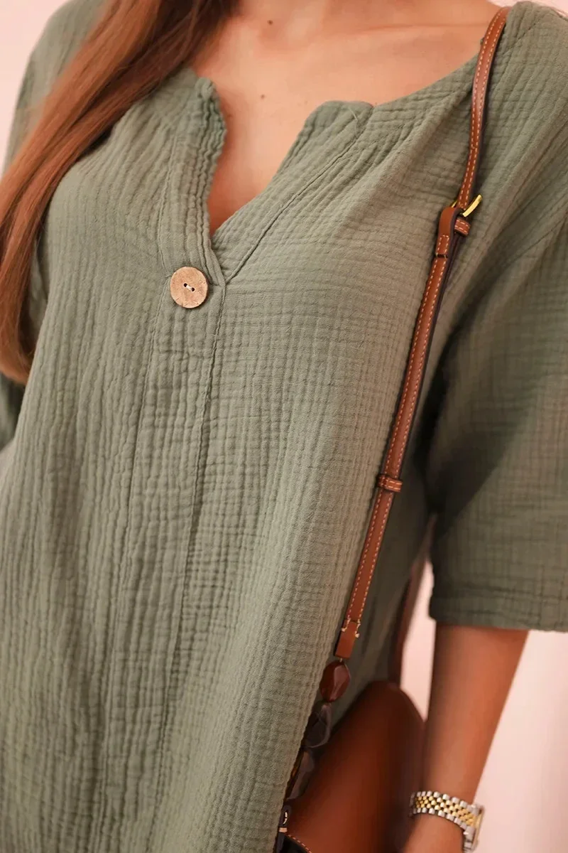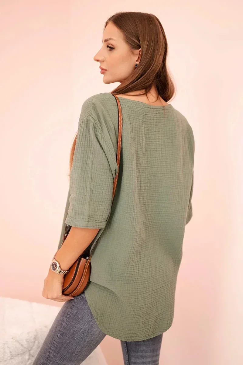 Přidání recenze k Dámská mušelínová košile s knoflíkem khaki