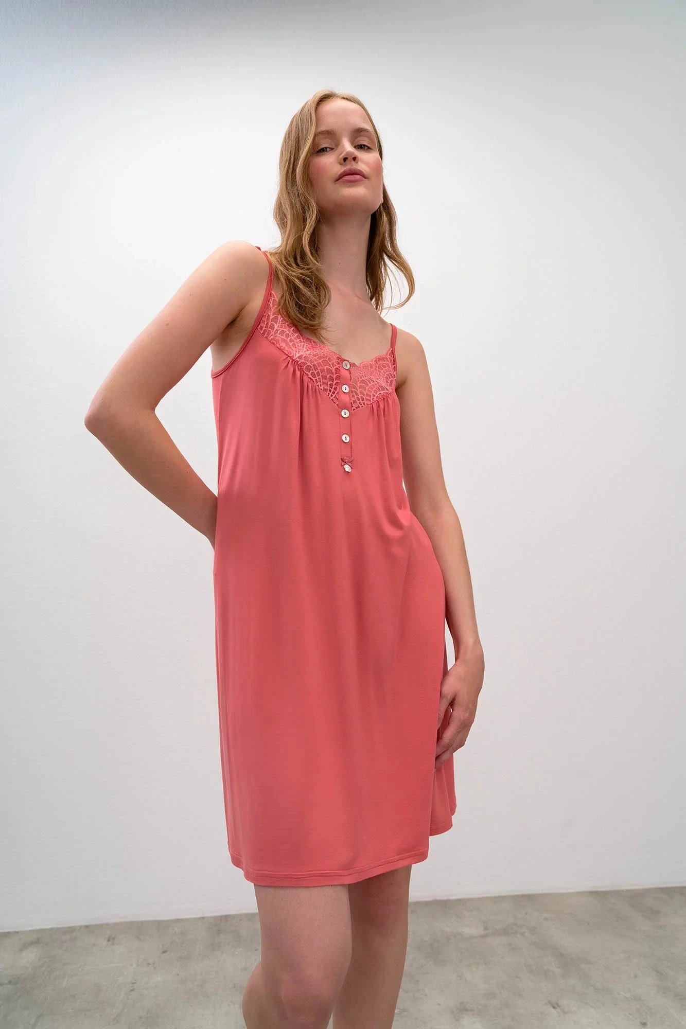 Dámská noční košile na ramínka, na předním dílu krajka.