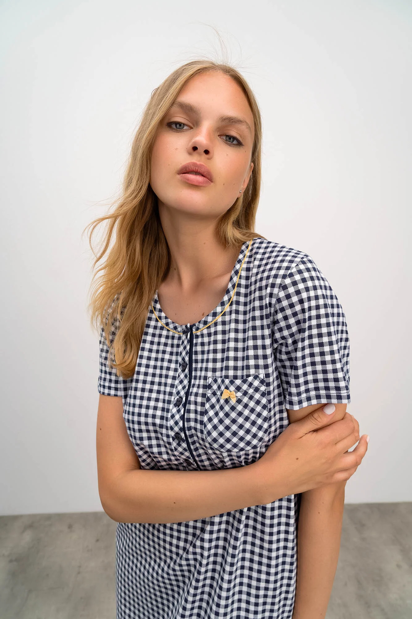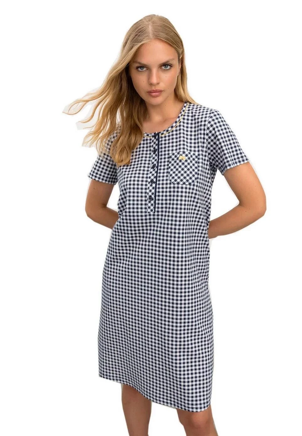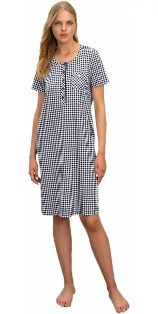 Dámská noční košile 16215-183 - Vamp - s krátkým rukávem, náprsní kapsičkou. Kulatý výstřih lze rozepnout pěti knoflíčky.