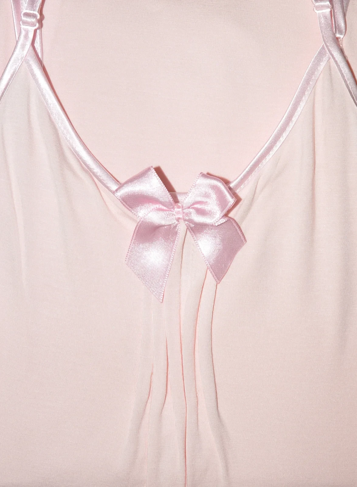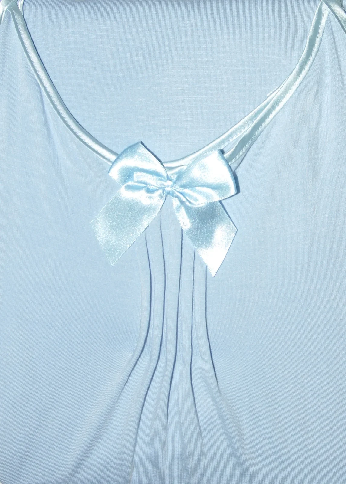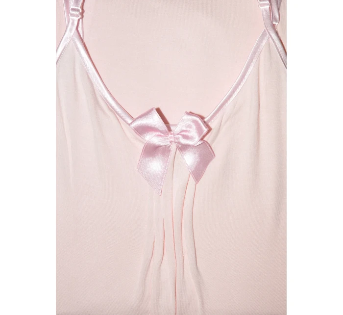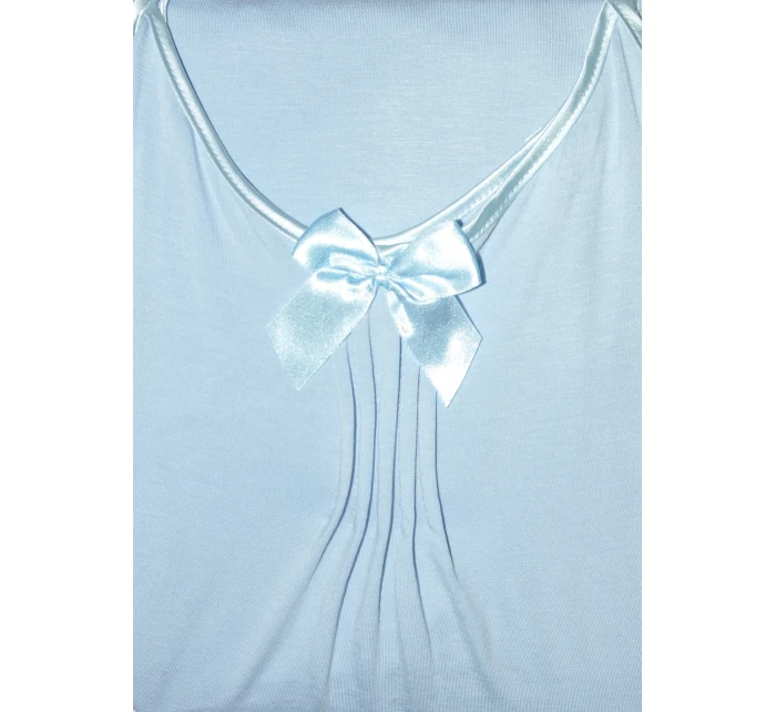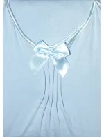 Model má úzká saténová ramínka, jejichž délku je možné nastavit. Výstřih modelu je ozdobený mašličkou a jemným nařasením.