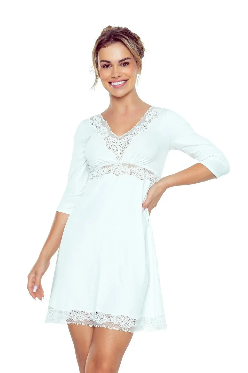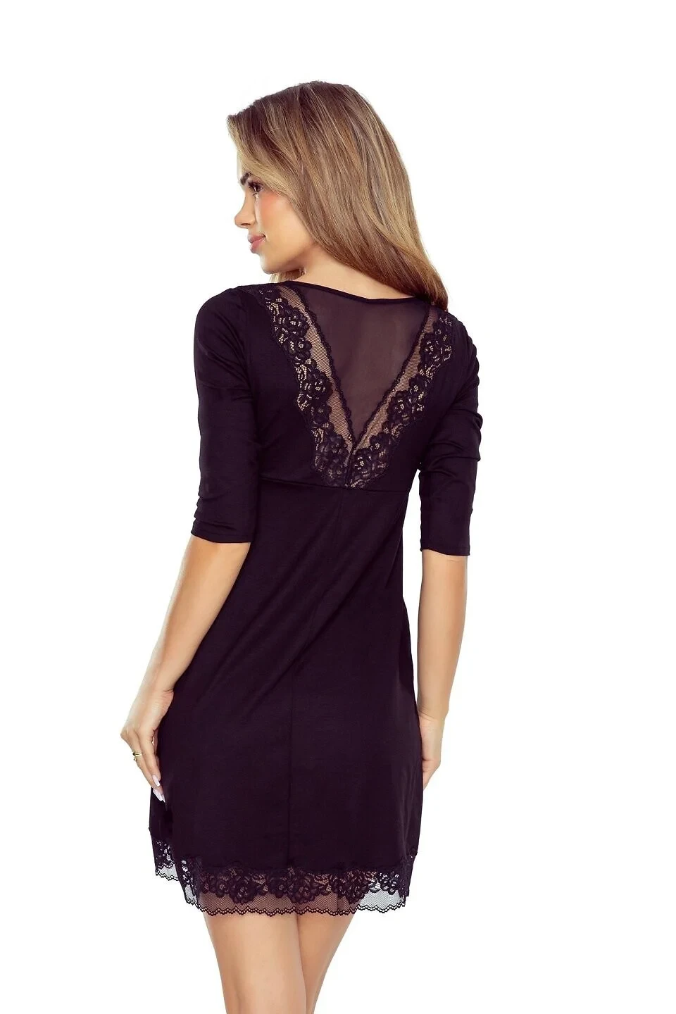 - výstřih, rukávy a spodní lem zdobené krajkou s květinovým vzorem