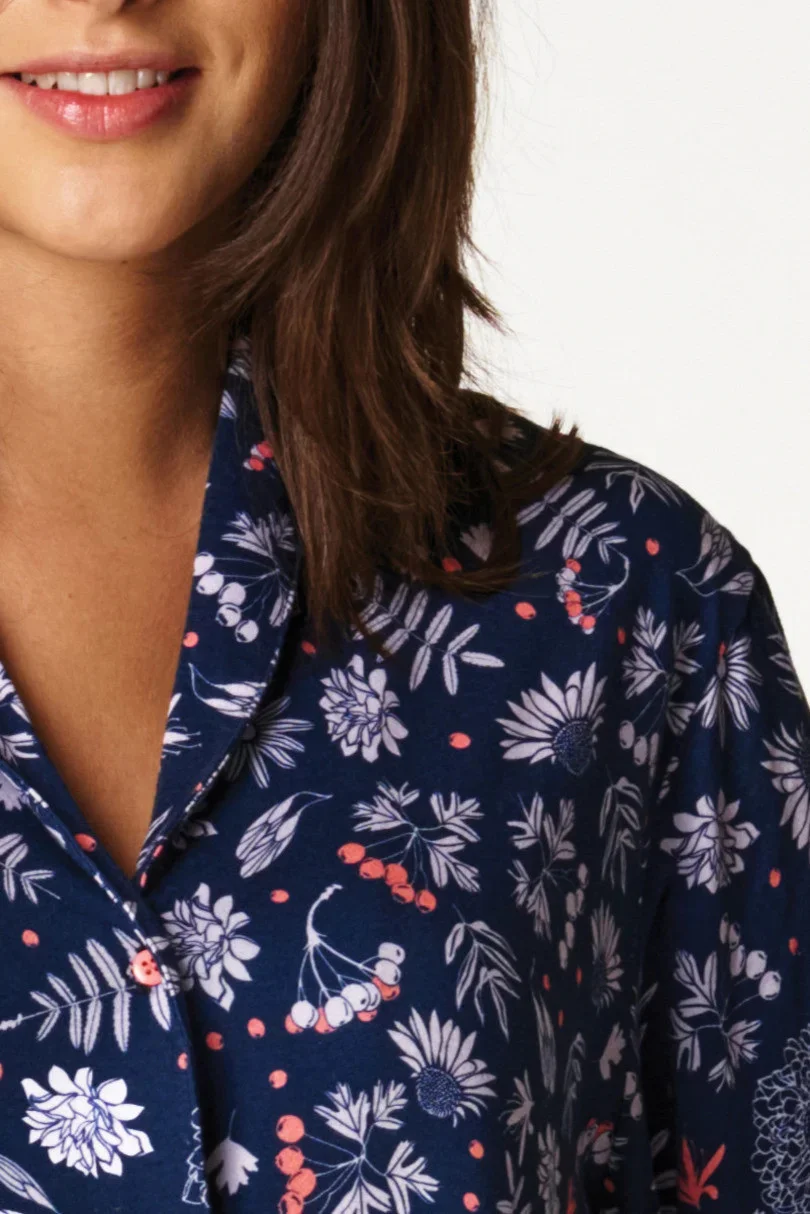 Rozepínací dámská bavlněná noční košile s kapsami.