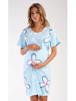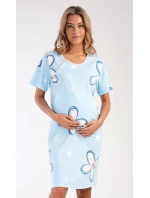 Dámská bavlněná mateřská noční košile Veronika. Noční košile je svým střihem určená na dobu těhotenství, do porodnice i ke kojení. Ke kojení slouží průstřihy po stranách košile, které jsou uzavíratelné na knoflíky. Košile je ozdobena potiskem velkých květů. Použitý materiál s obsahem bavlny 100% je příjemný a poddajný na dotek.