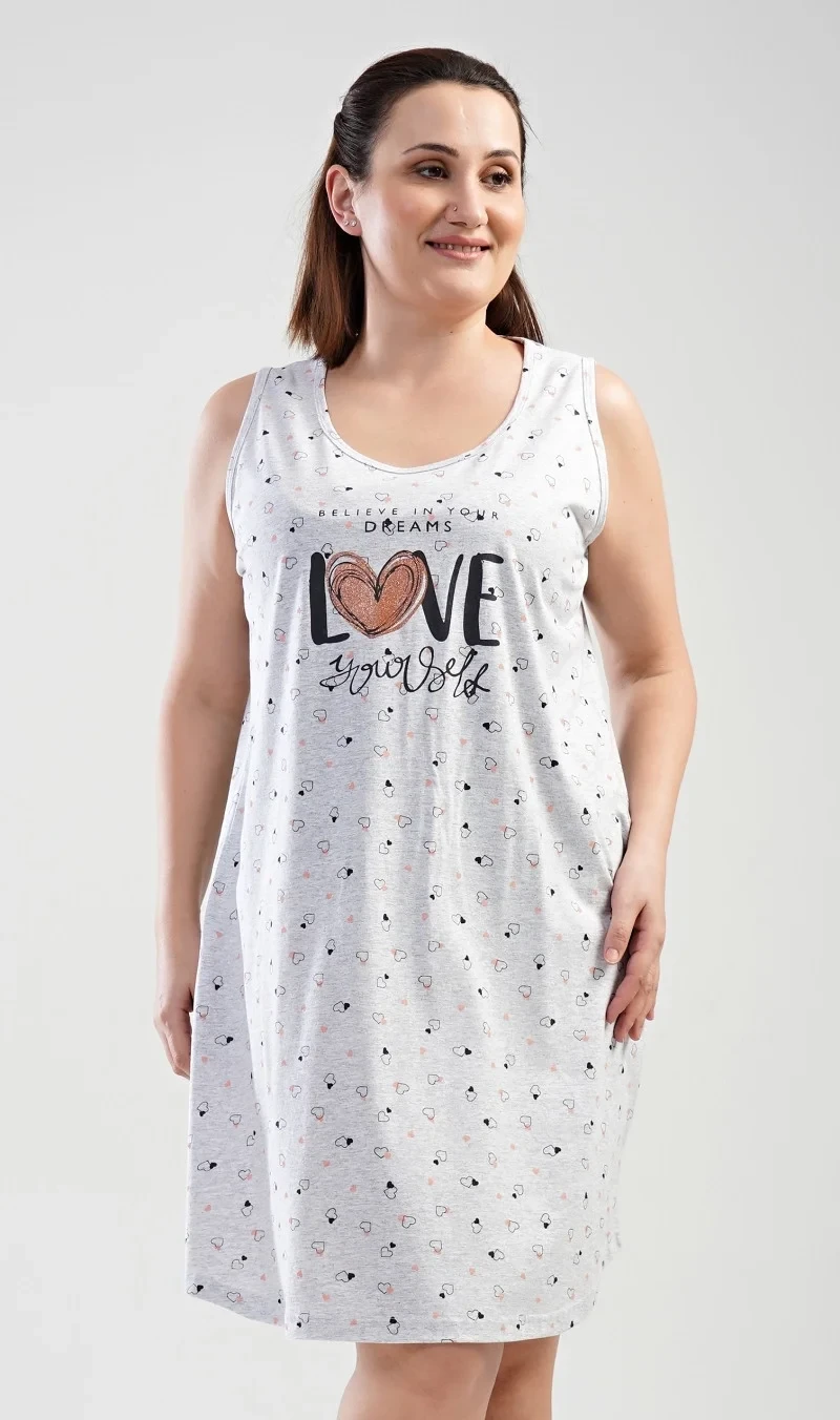 Dámská noční košile na ramínka Love. Dámská noční košile na široká ramínka má na hrudi nápis Believe in your dreams - Love yourself. Látka košile je potištěna drobnými srdíčky. Použitý materiál je jemný a poddajný na dotek. Košile je vhodná na denní nošení.