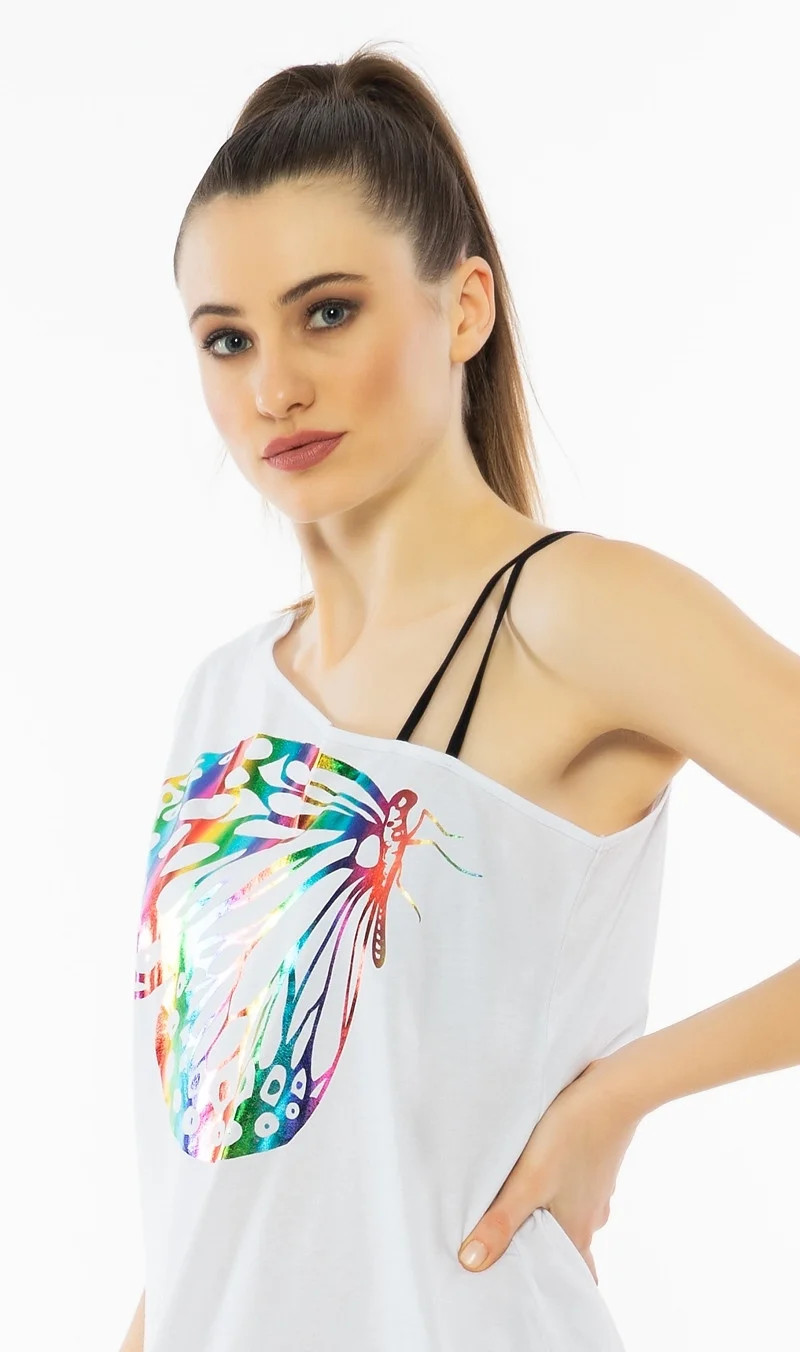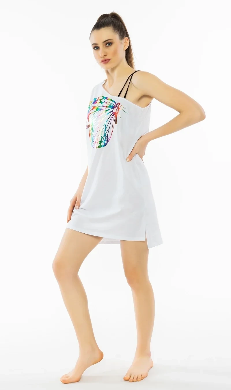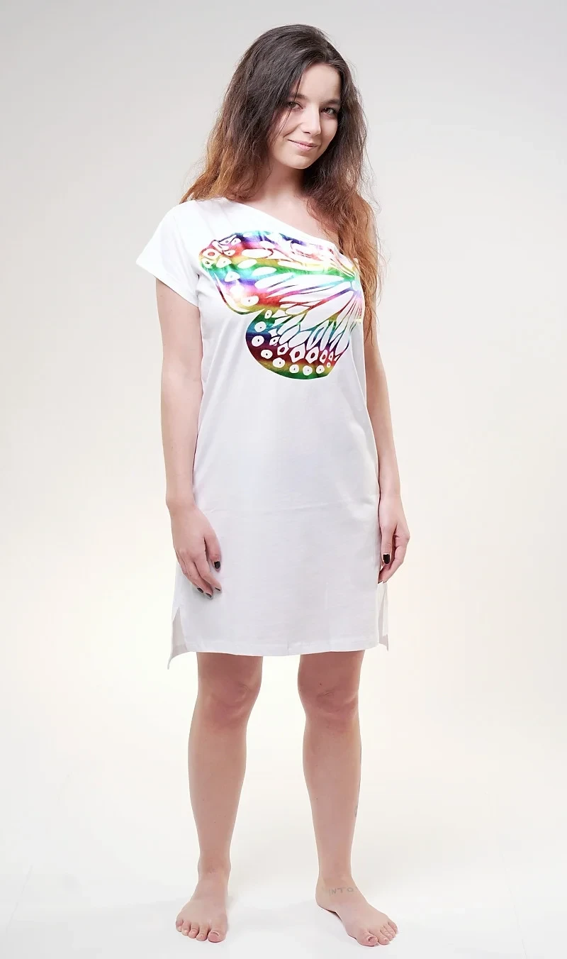 Dámská bavlněná noční košile na ramínka Klárka. Noční košile se širšími ramínky a kulatým výstřihem je potištěna listy. Použitý materiál s obsahem bavlny 100% je příjemný a poddajný na dotek. Košile je vhodná i na denní nošení, obvzlášť v horkých letních dnech.