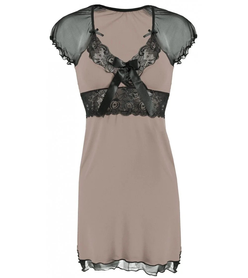 Sexy noční košilka s výstřihem zdobeným květinovou krajkou. Pod poprsím je také krajková aplikace. Střihněte mírně u těla. Pletenina je měkká a pružná a hýčká pokožku. Rukávy z hladkého tylu. Složení: 92 % viskóza. 8% elastan.