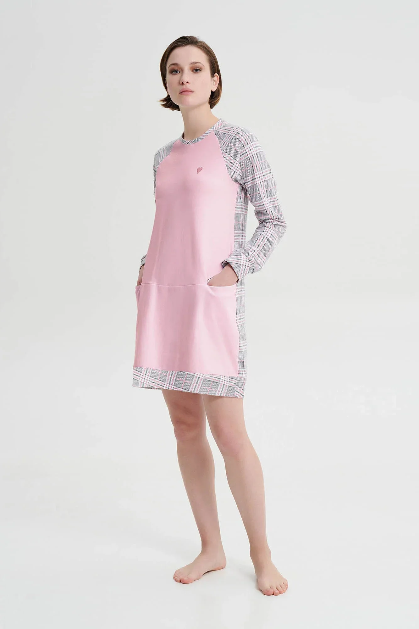 Noční košile s kulatým výstřihem, dlouhými rukávy a kapsami v přední části. Nadčasový kostkovaný design, který budete ráda nosit celou zimu.