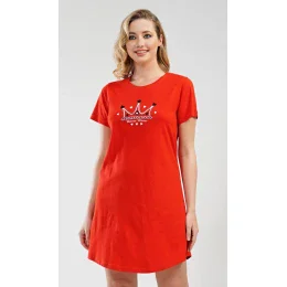Dámská bavlněná noční košile s krátkým rukávem Koruna. Noční košile má na hrudi obrázek koruny doplněný karetními symboly s nápisem 'Always Winner'. Použitý bavlněný materiál je příjemný a poddajný na dotek.