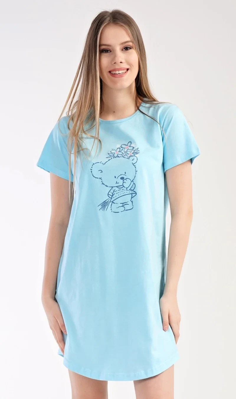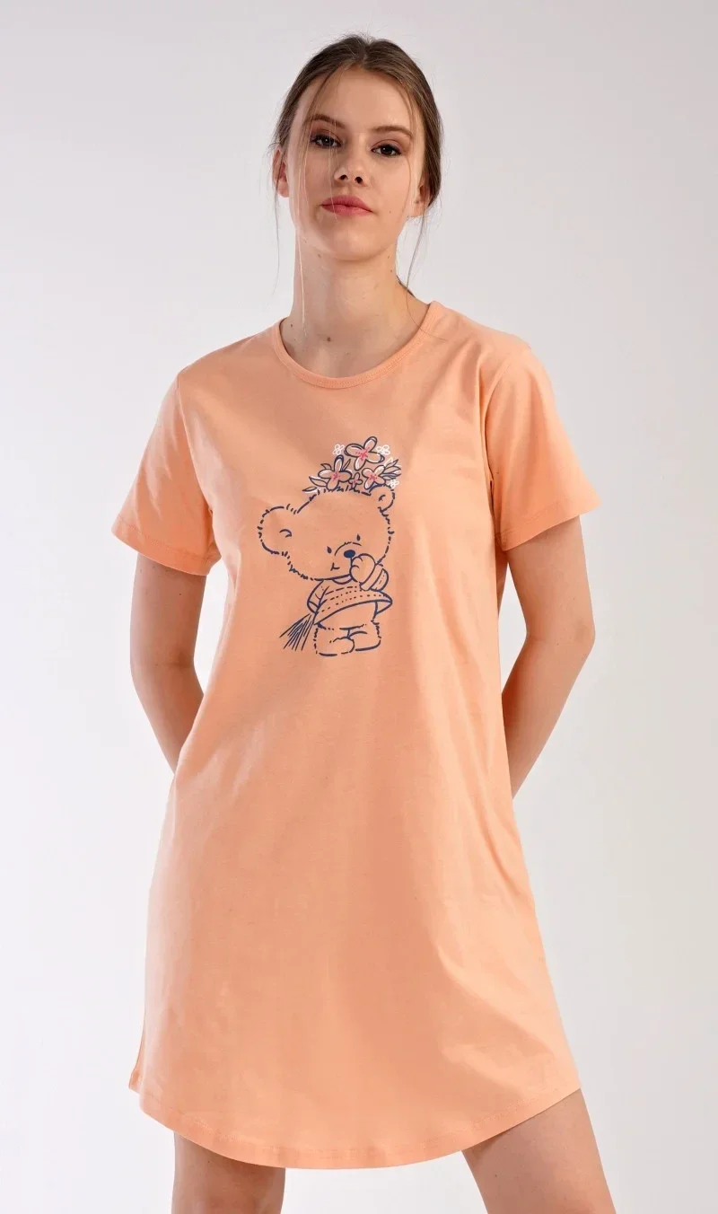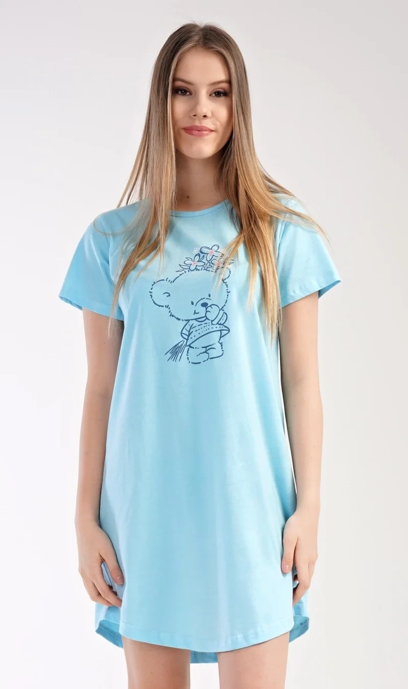 Dámská noční košile s krátkým rukávem Méďa s kytkou
