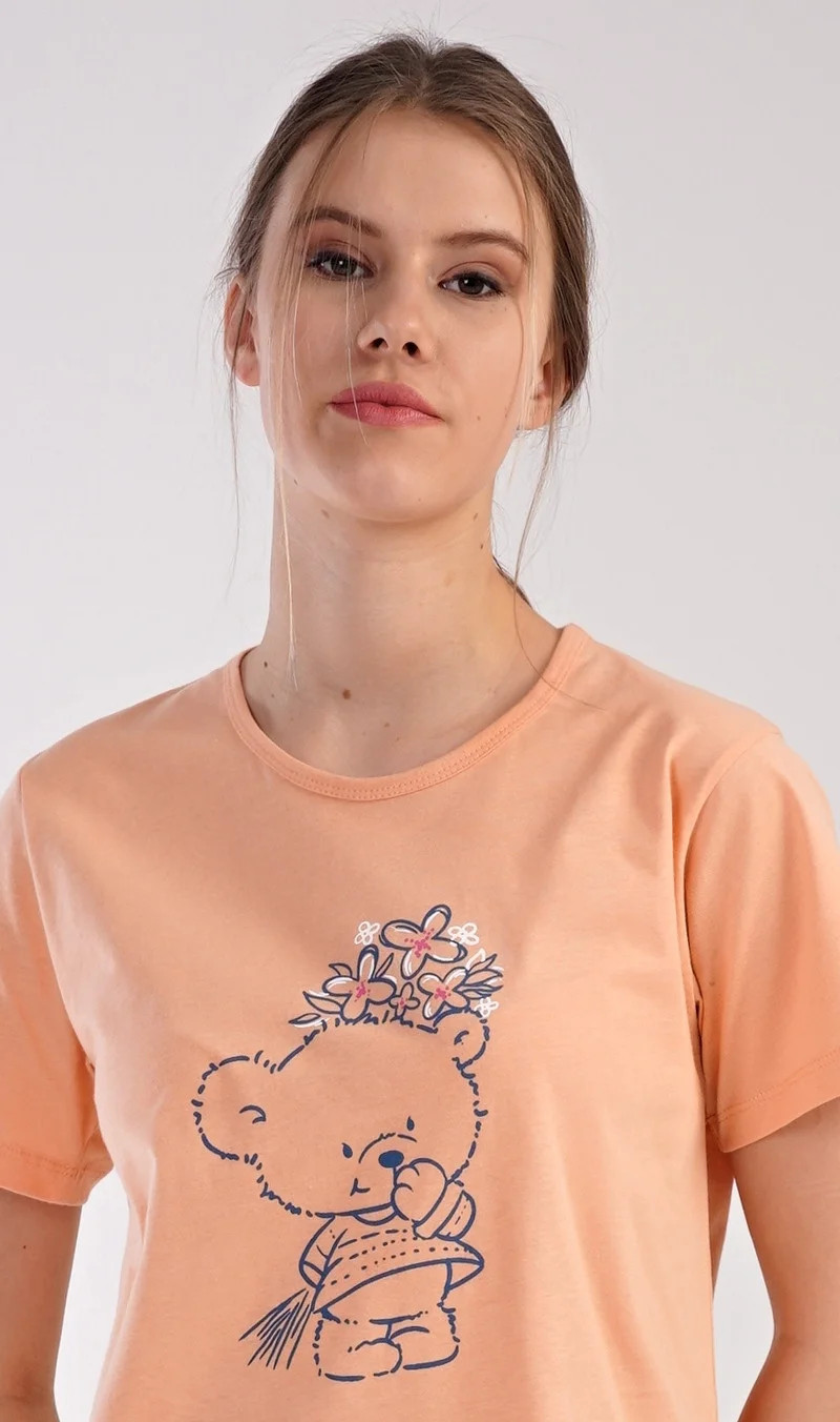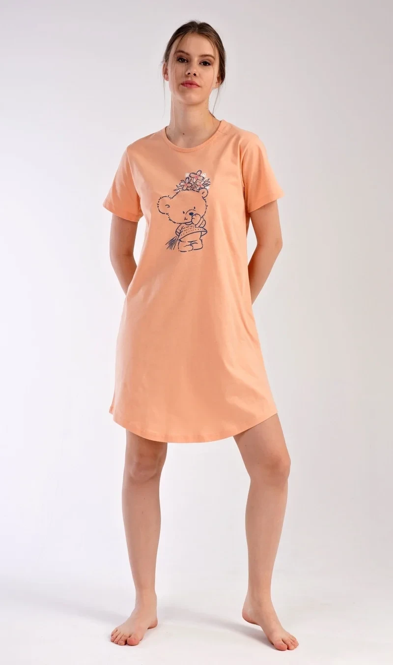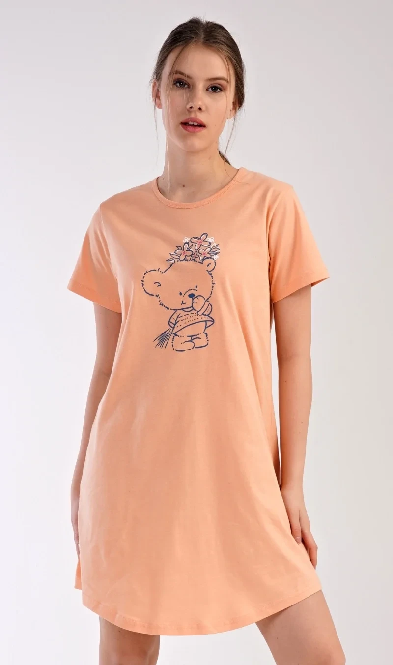 Dámská noční košile s krátkým rukávem Méďa s kytkou