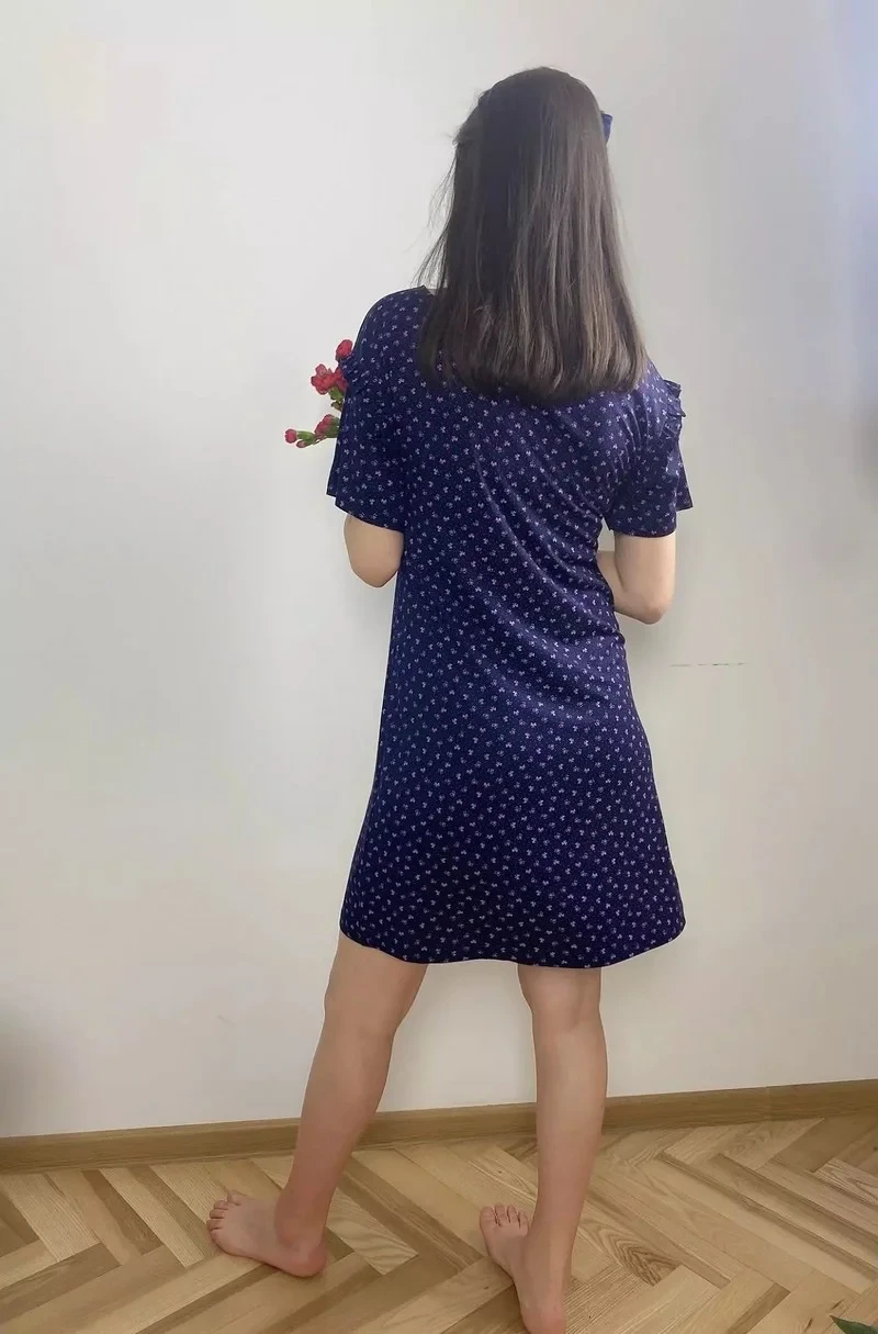 Dámská noční košile, která je ušitá z velmi kvalitní vzorované viskózy se vzorem mašliček.