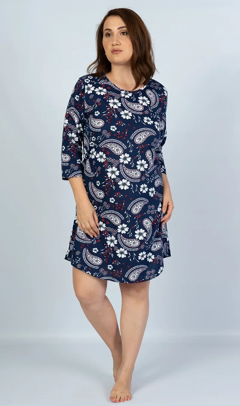 Dámská noční košile s tříčtvrtečním rukávem Motýli. Dámská noční košile v příjemných tlumených barvách s potiskem motýlků. Použitý materiál je jemný a poddajný na dotek. Košile je vhodná na denní nošení.