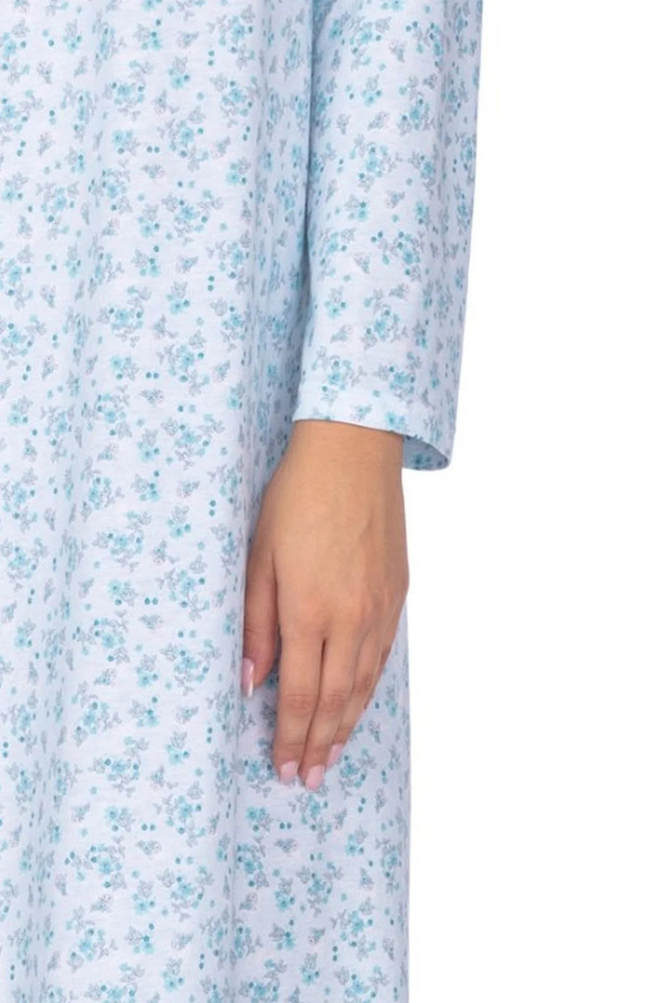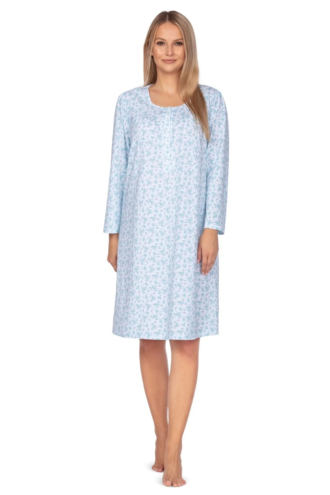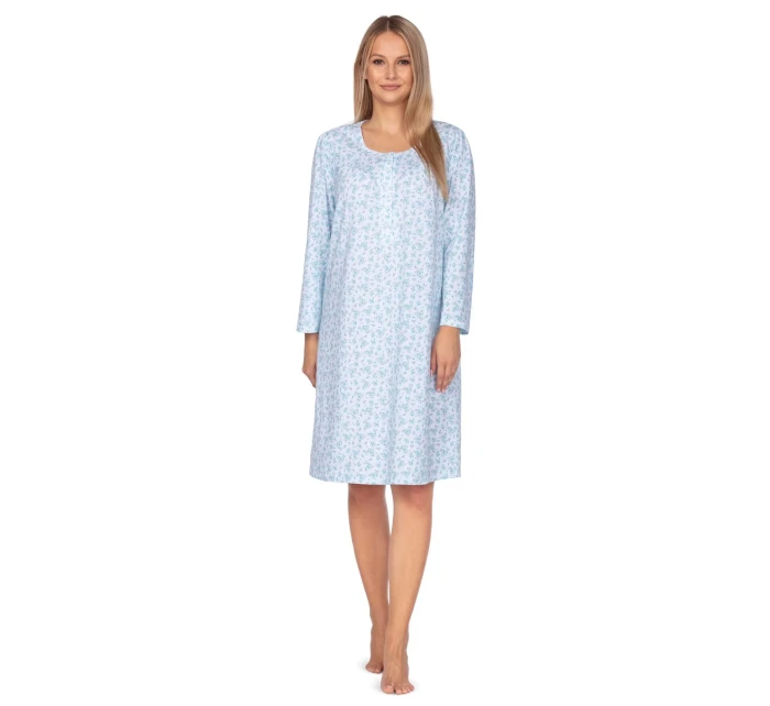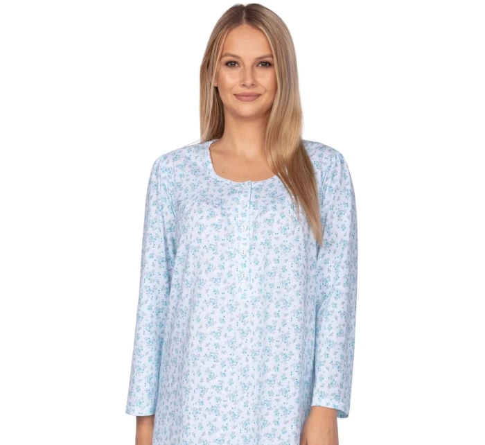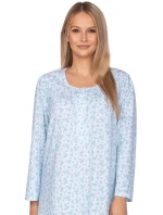 Dámská noční košilka 013 blue REGINA - světle modrá barva - z vysoce jakostní bavlny - se vzorem - kulatý výstřih - krátké rukávy - zapínání na knoflíky