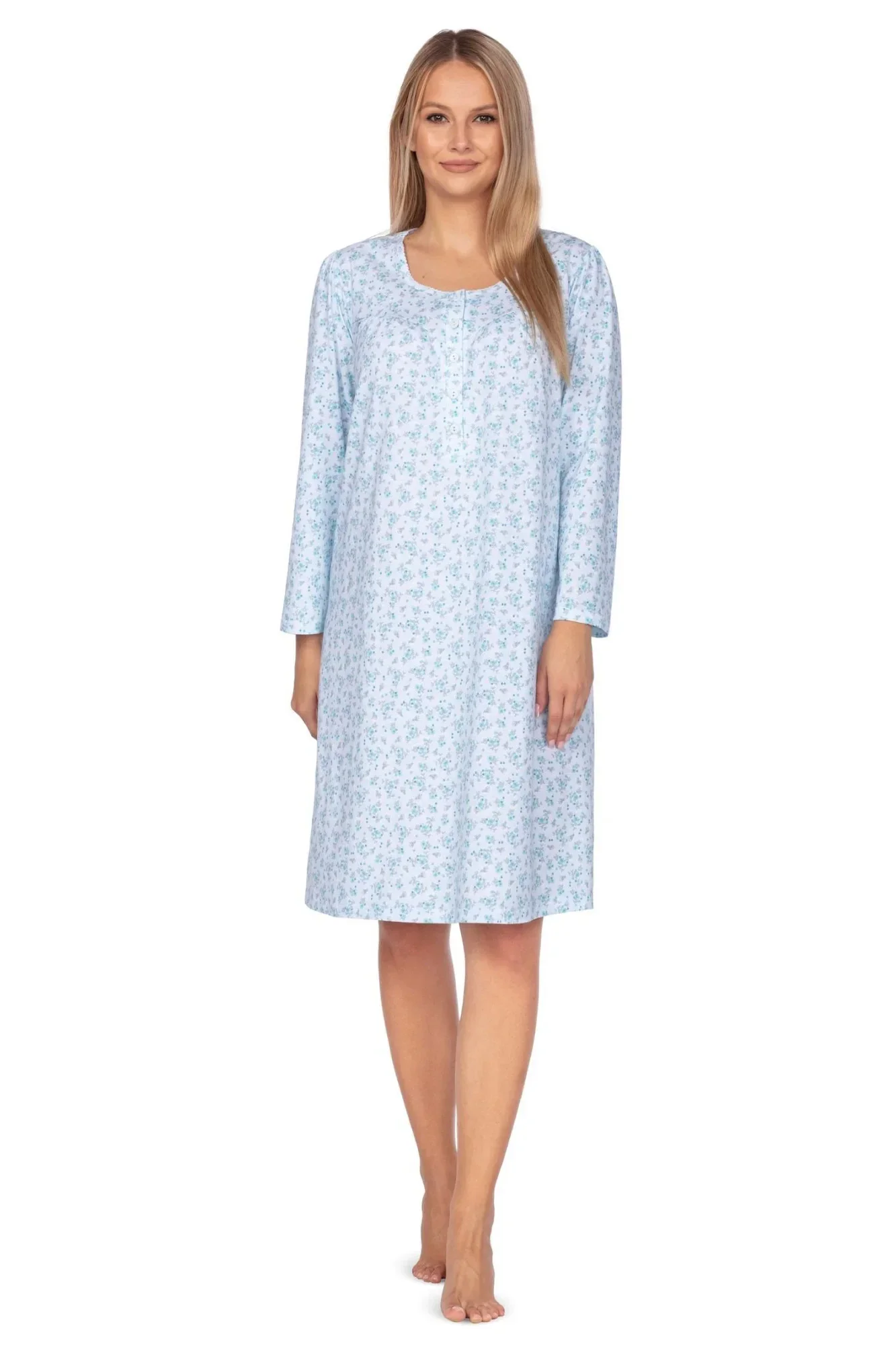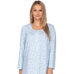 Dámská noční košilka 007 turquise REGINA - tyrkysová barva - z vysoce jakostní bavlny - vzorovaná - dlouhé rukávy - výstřih se zapínání na knoflíky