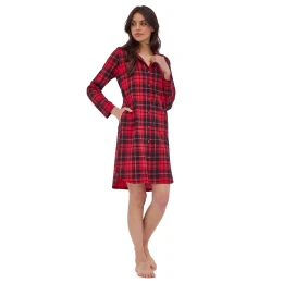 Dámská noční košilka 104/409 Kaya 2 CORNETTE - červená barva - z vysoce jakostní bavlny - límeček - dlouhé rukávy - zapínání na knoflíky - kapsy na bocích - zaoblený spodní lem