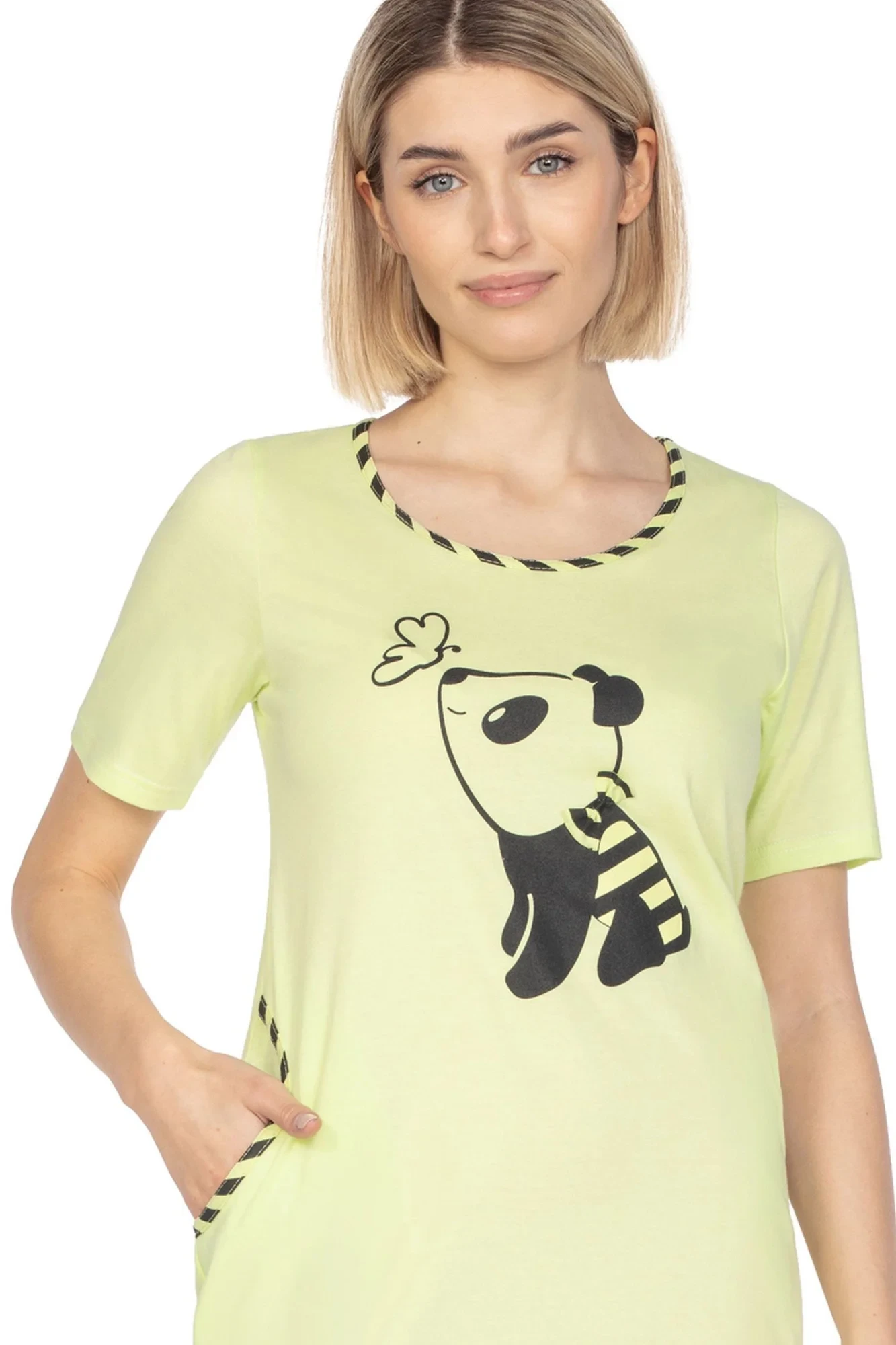 Dámská noční košilka 125 green REGINA - zelená barva - z vysoce jakostní bavlny - krátké rukávy - zdobená potiskem na přední straně - s kapsamiMateriálové složení: 100% bavlna
