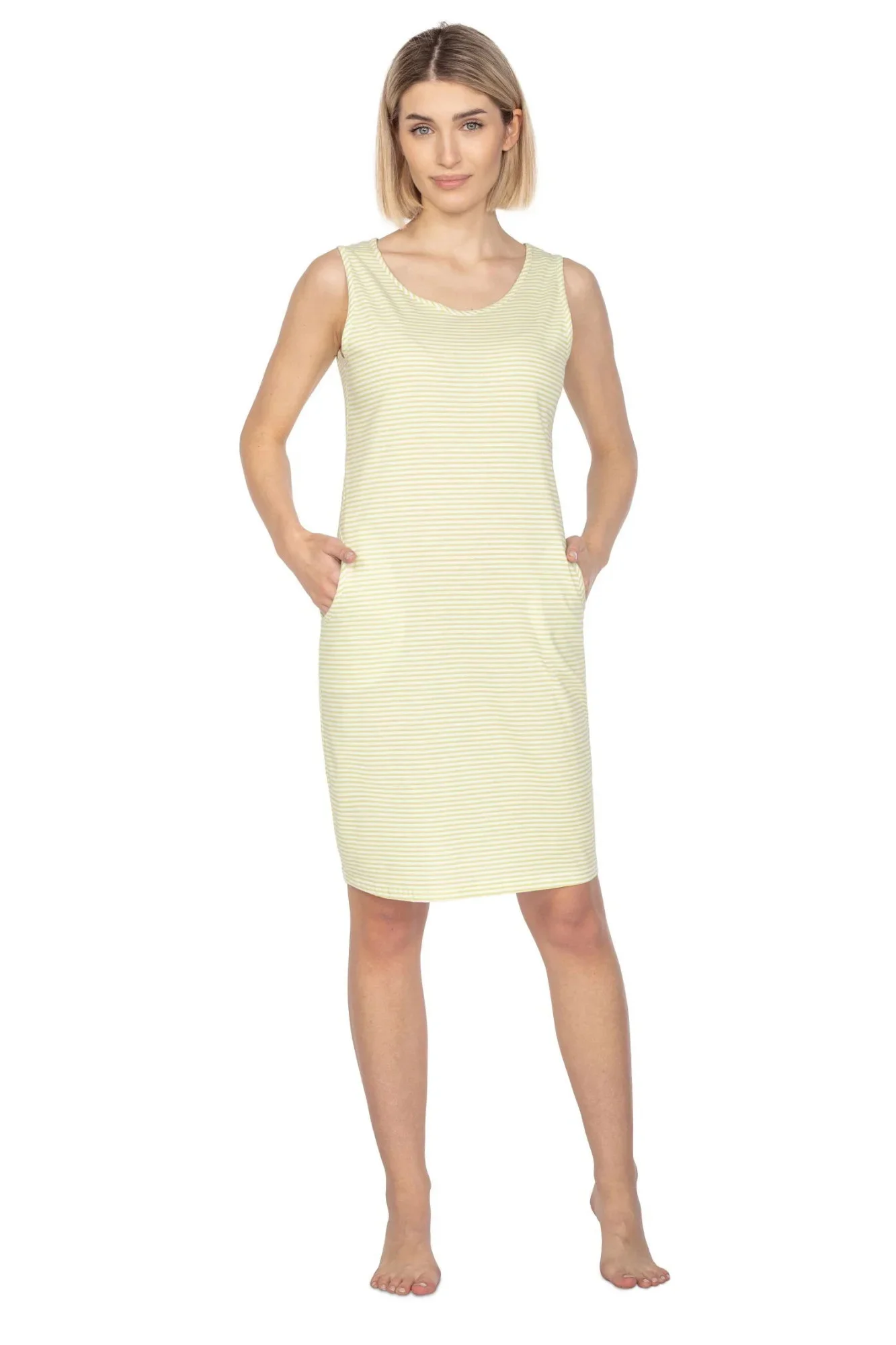 Dámská noční košilka 128 green REGINA - zelená barva - z vysoce jakostní bavlny - pruhovaná - široká ramínka - pohodlné kapsy na bocích