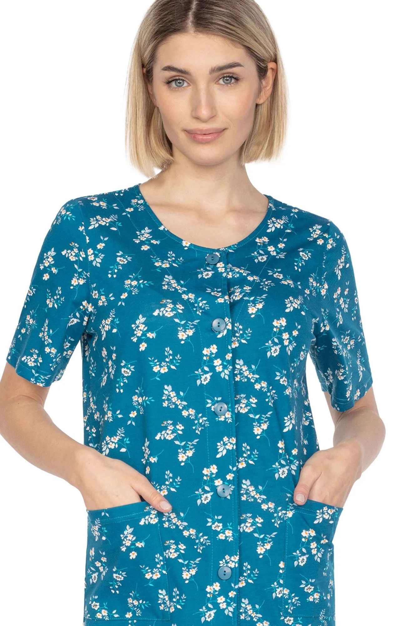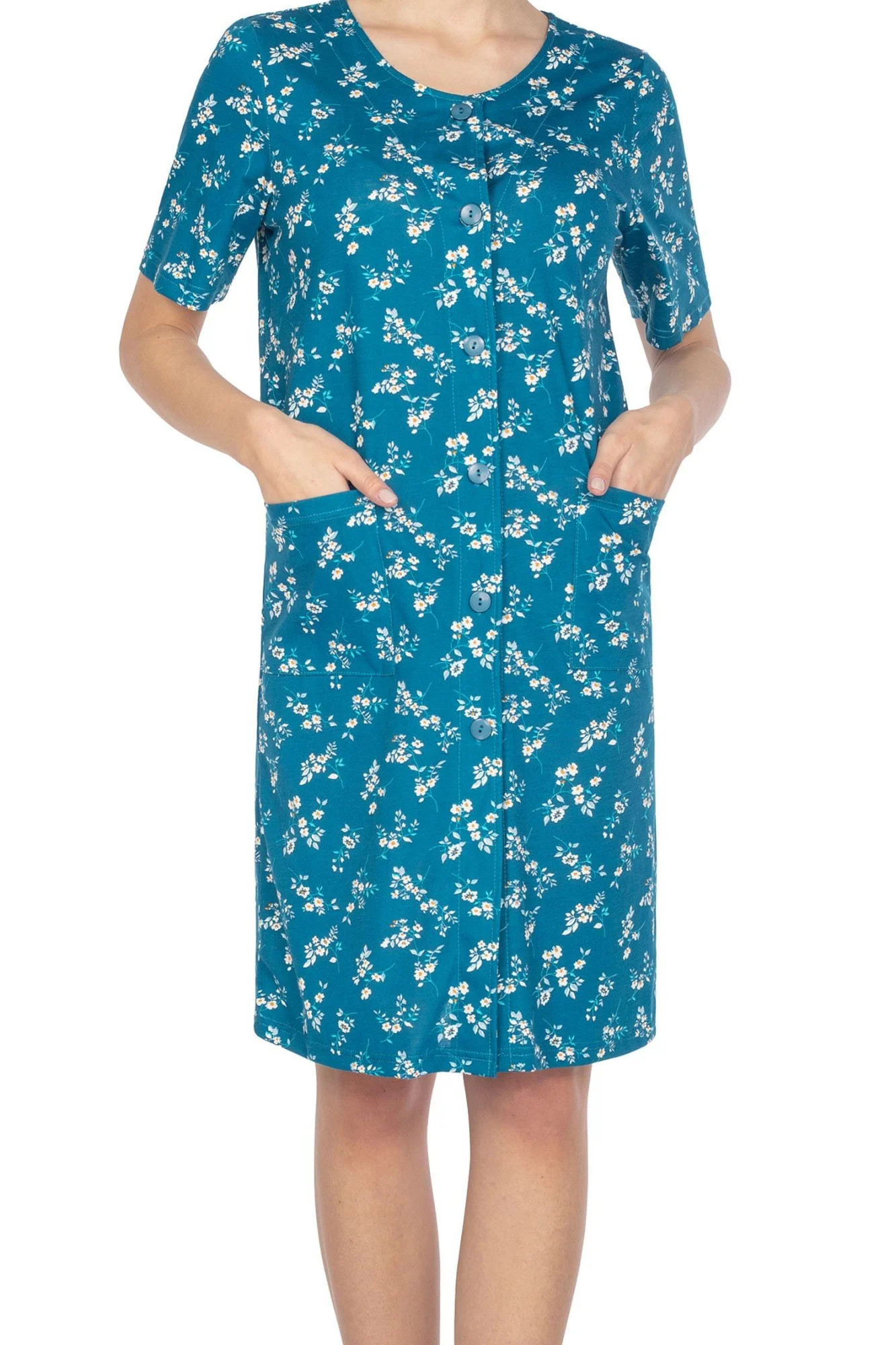 Dámská noční košilka 129 green REGINA - zelená barva - z vysoce jakostní bavlny - krátké rukávy - s květinovým motivem - zapínání na knoflíky - s kapsami