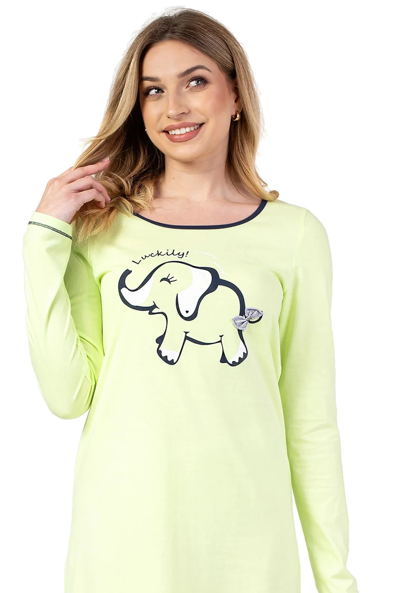 Dámská noční košilka 142 green REGINA - zelená barva - z vysoce jakostní bavlny - na přední straně zdobené potiskem - dlouhé rukávy - prošívané lemyMateriálové složení: 100% bavlna