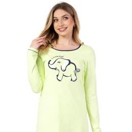 Dámská noční košilka 142 green REGINA - zelená barva - z vysoce jakostní bavlny - na přední straně zdobené potiskem - dlouhé rukávy - prošívané lemy