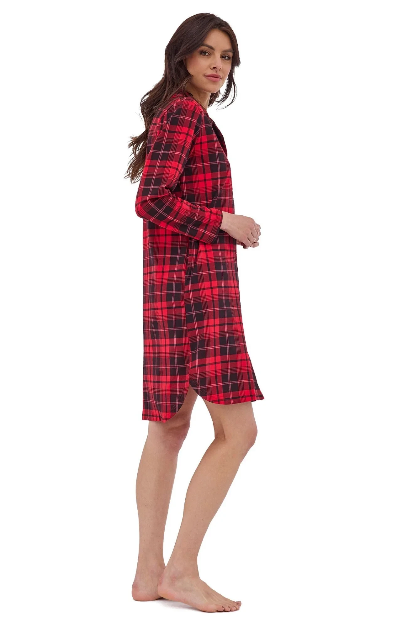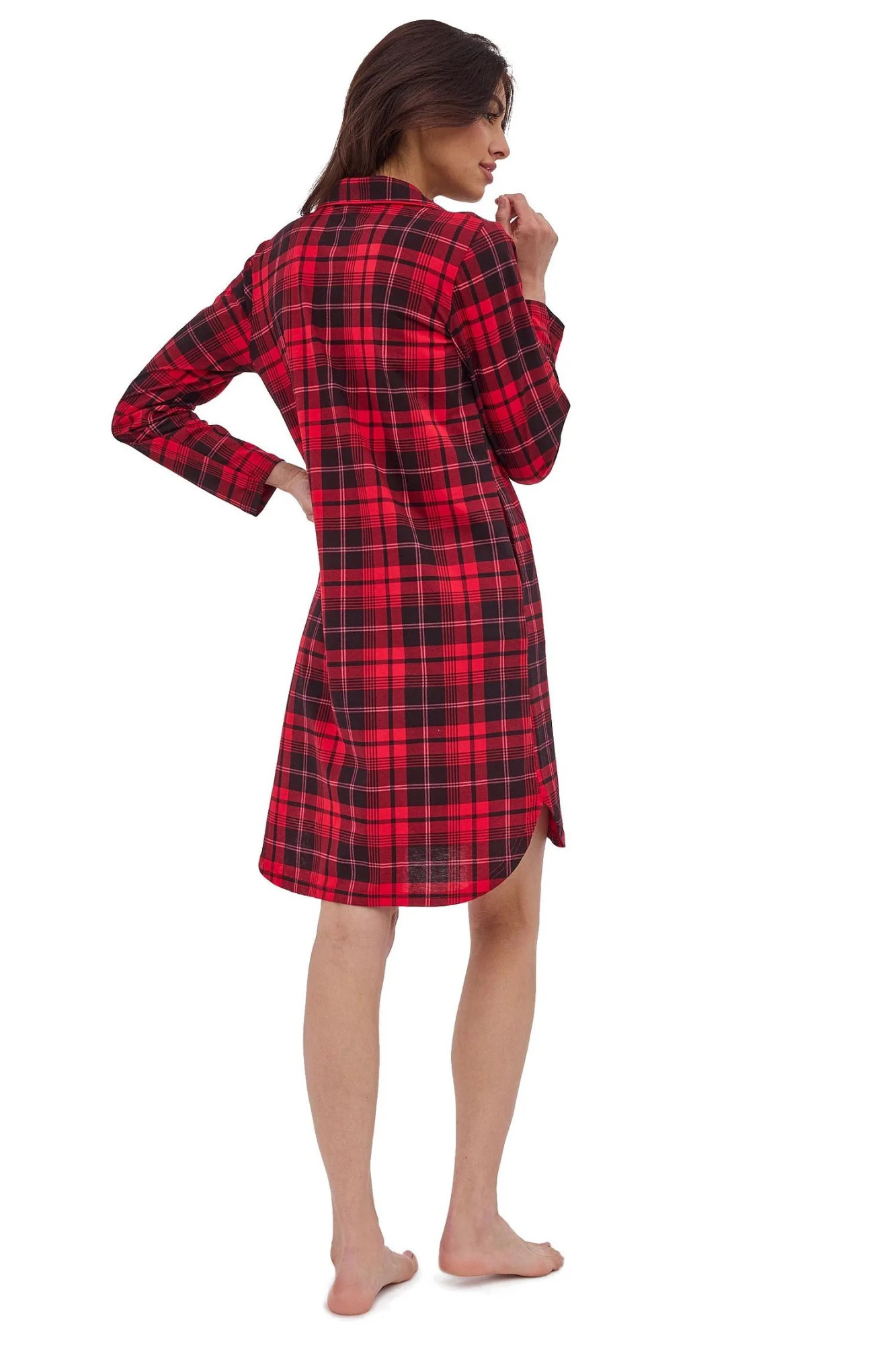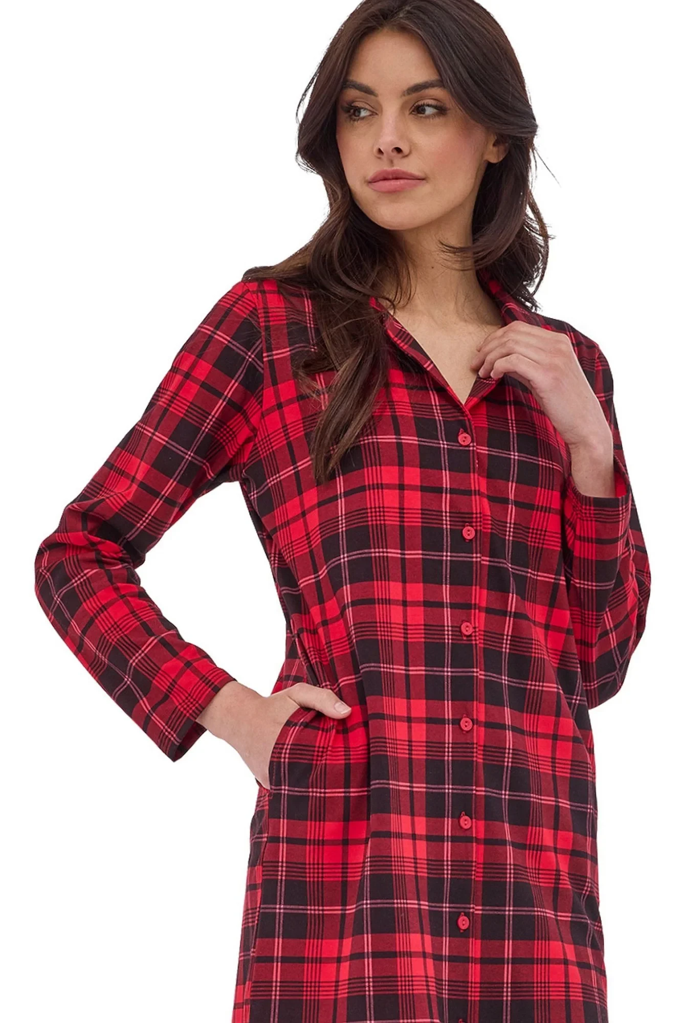 Dámská noční košilka 104/409 Kaya 2 CORNETTE - červená barva - z vysoce jakostní bavlny - límeček - dlouhé rukávy - zapínání na knoflíky - kapsy na bocích - zaoblený spodní lem