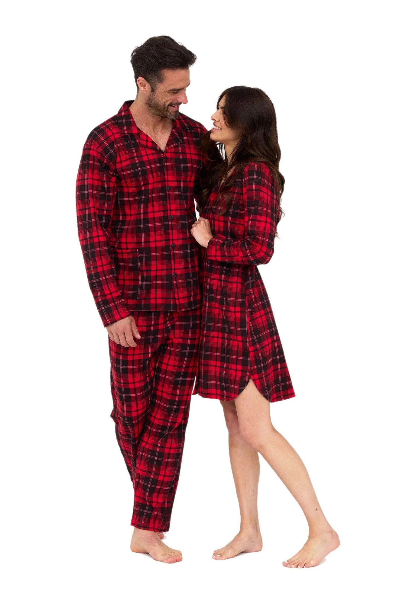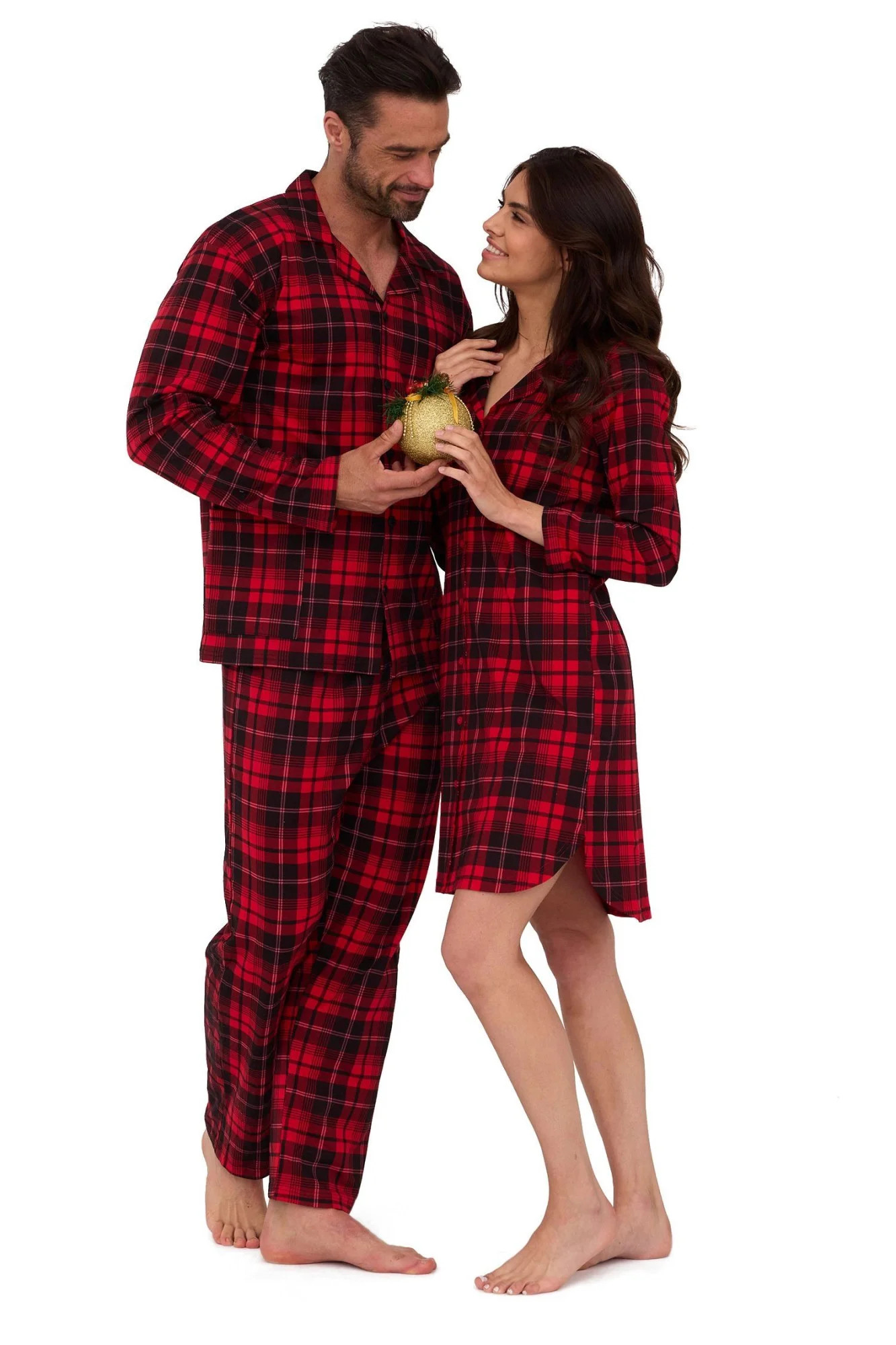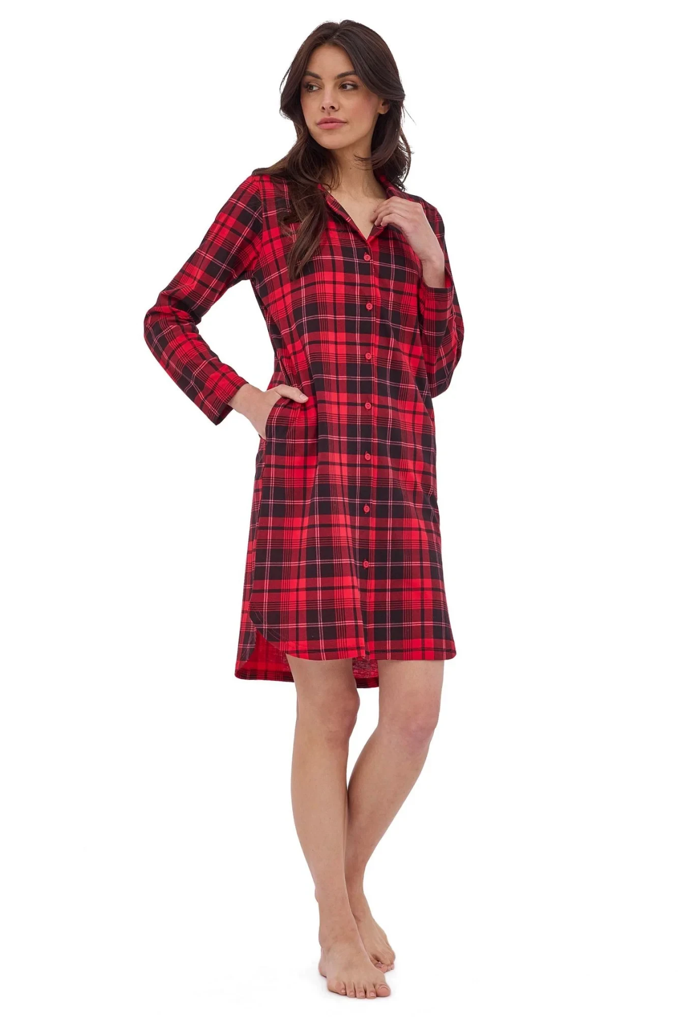 Dámská noční košilka 104/409 Kaya 2 CORNETTE - červená barva - z vysoce jakostní bavlny - límeček - dlouhé rukávy - zapínání na knoflíky - kapsy na bocích - zaoblený spodní lem