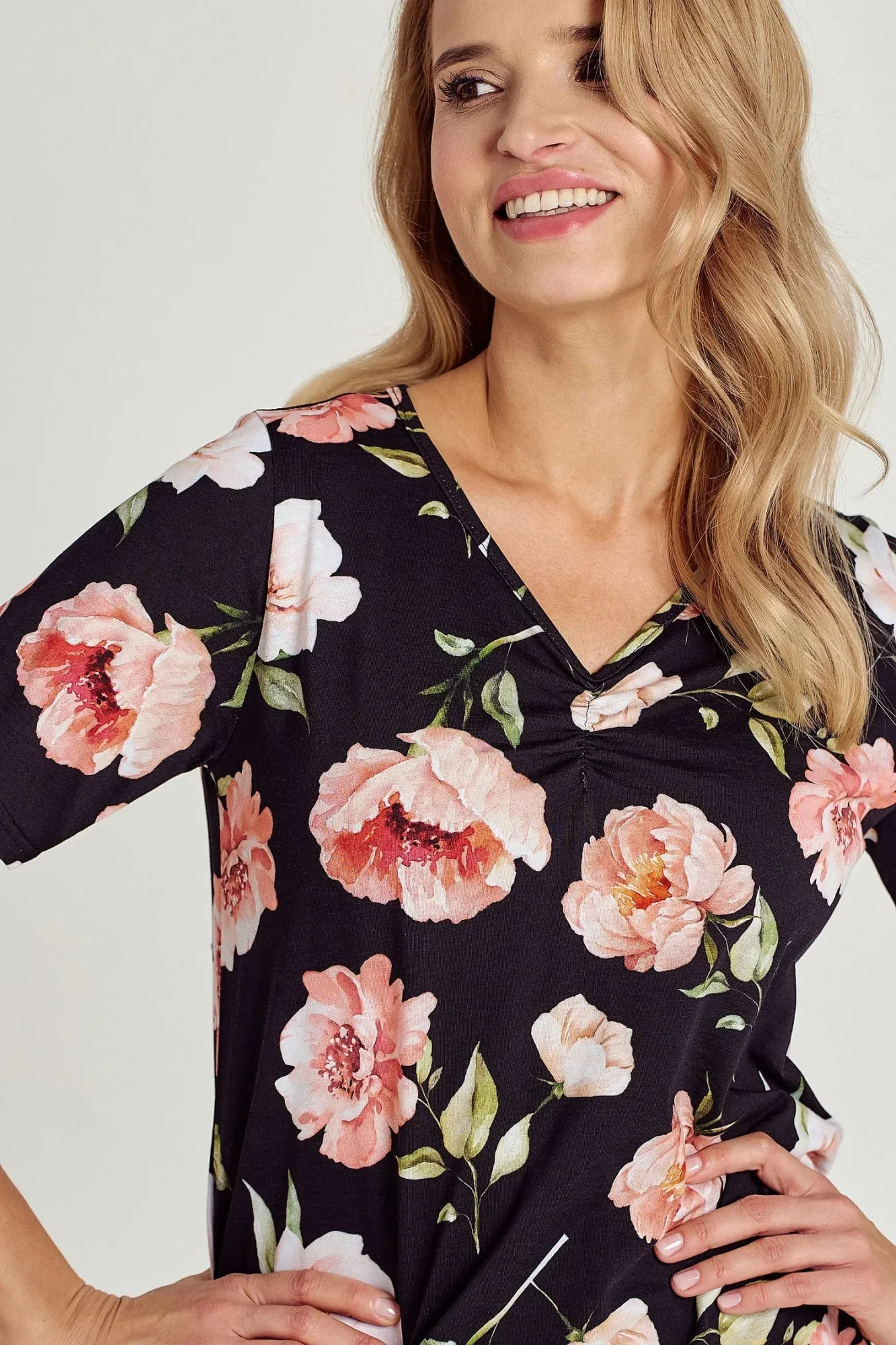 Dámská noční košilka 3134 Peony TARO - černá barva - z vysoce jakostní bavlny - krátké rukávy - květinový vzor - délka ke kolenůmMateriálové složení: 100% bavlna