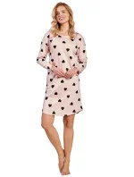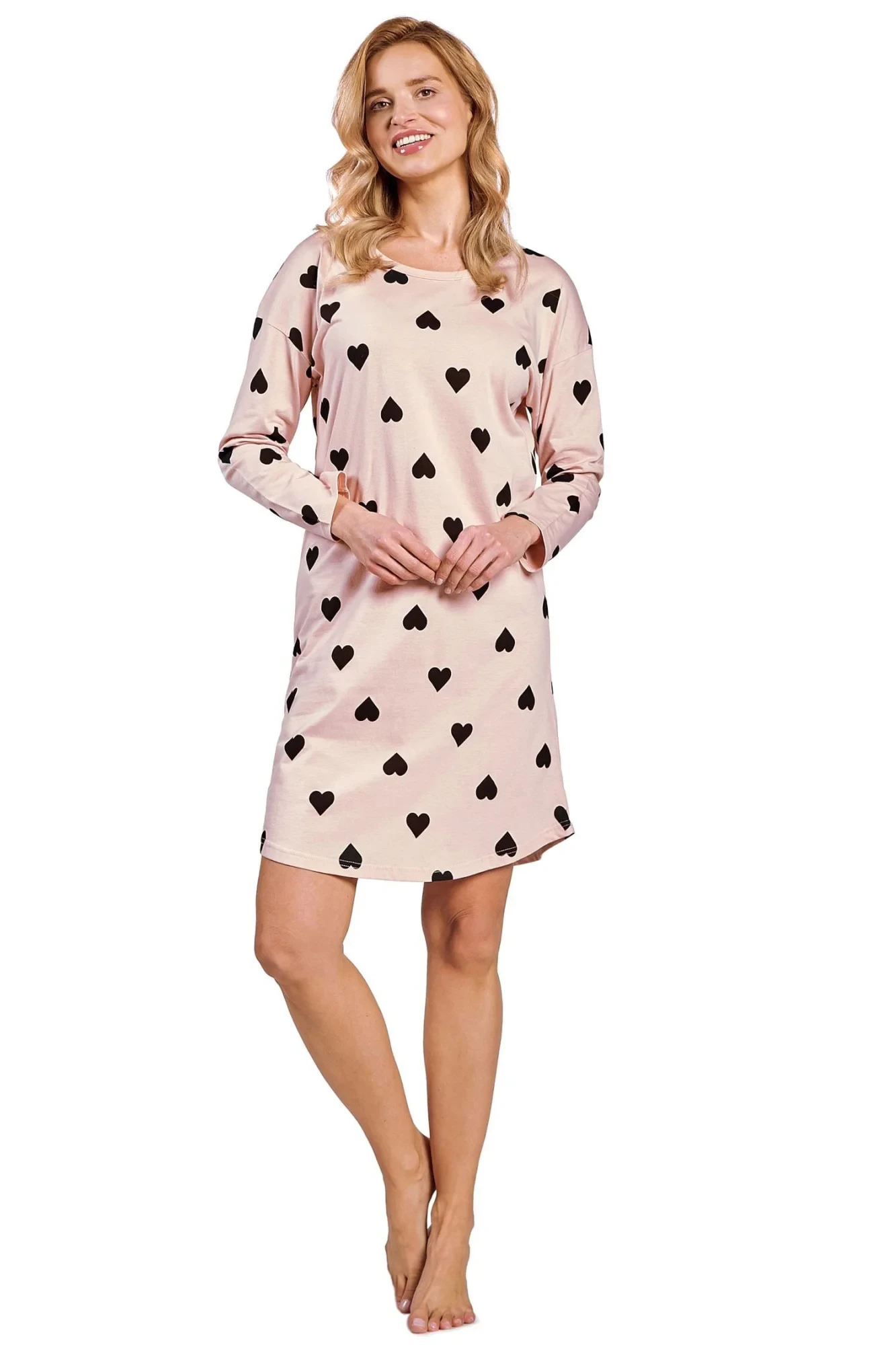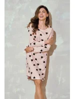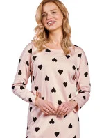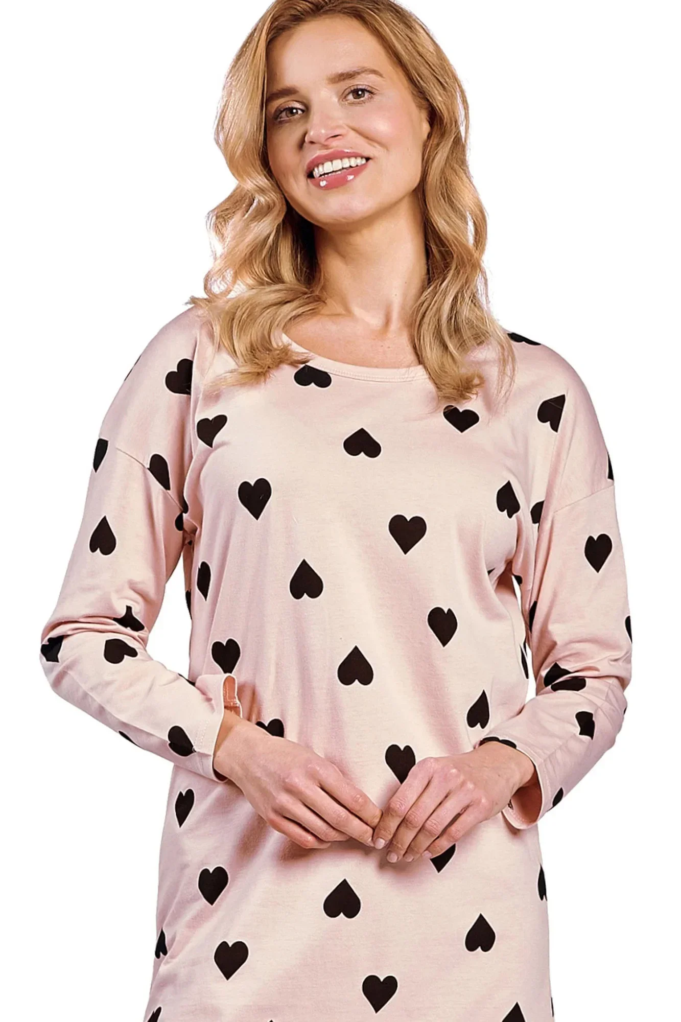 Dámská noční košilka 3207 Hannach TARO - růžová barva - z vysoce jakostní bavlny - se vzorem černých srdíček - dlouhé rukávy - lemy rukávů a spodní části zakončené jemným řasenímMateriálové složení: 100% bavlna