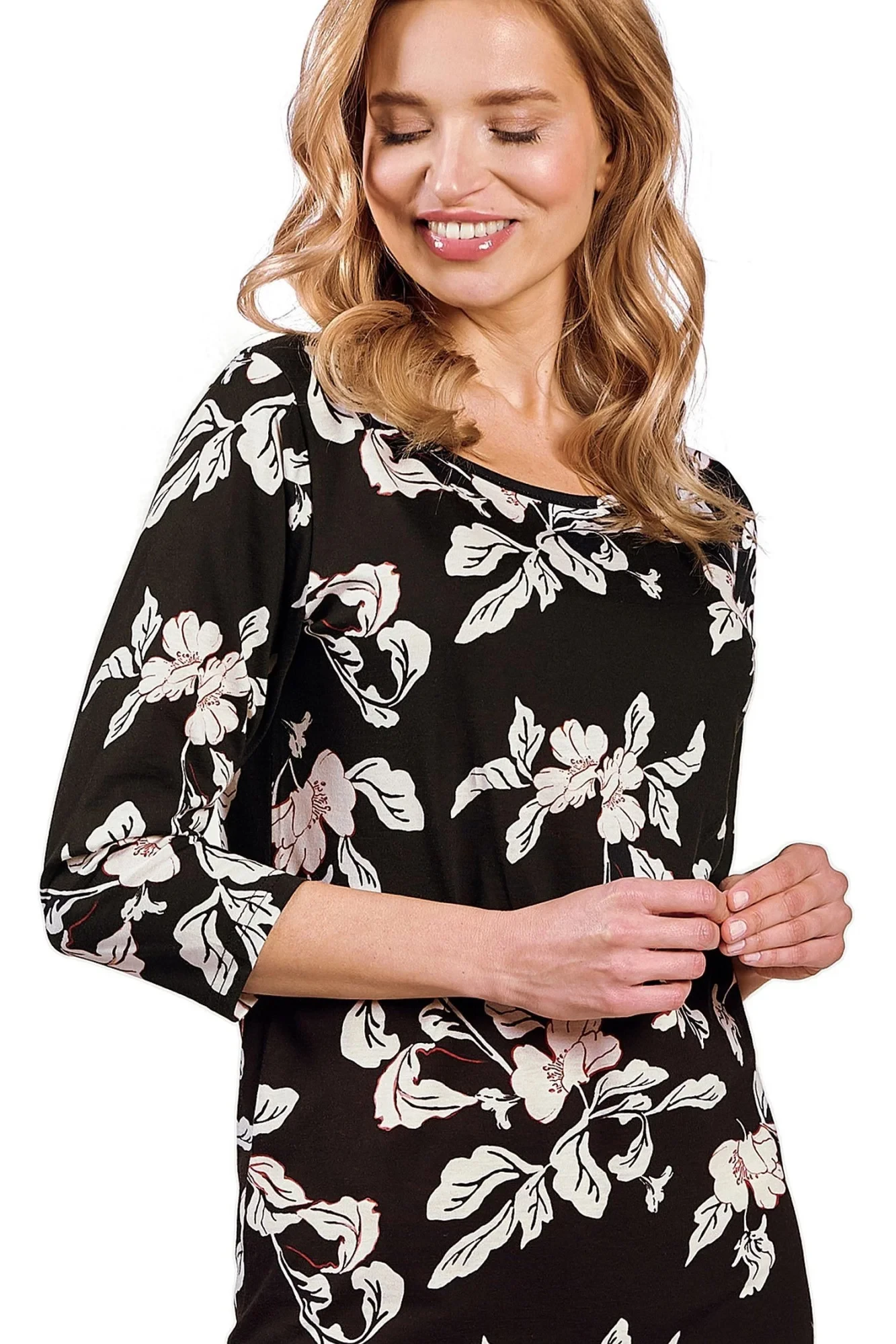 Dámská noční košilka 3233 Charlotte TARO - černá barva - z vysoce jakostní bavlny - se vzorem květů - tříčtvrteční rukávyMateriálové složení: 100% bavlna