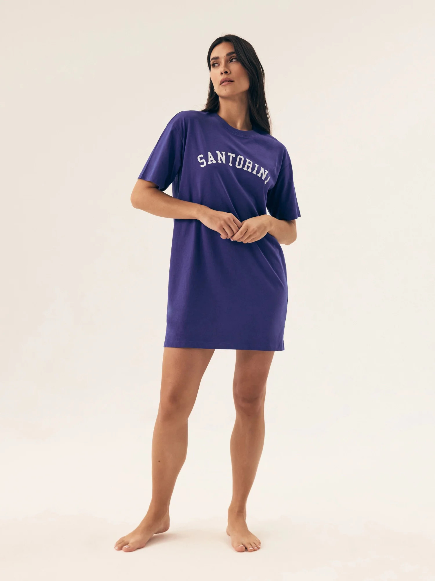 Dámská noční košilka 42675 Nimes blue HENDERSON - světle modrá barva - z vysoce jakostní bavlny - krátké rukávy - zdobené potiskem na přední straně