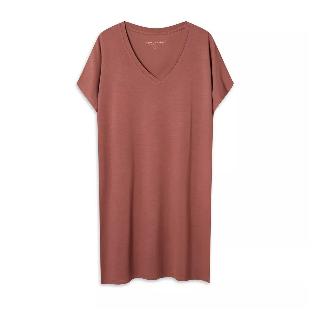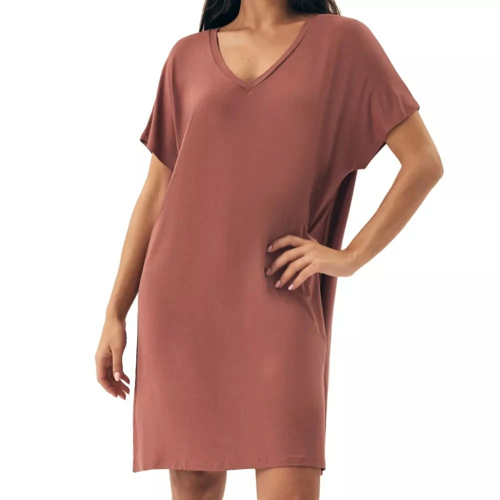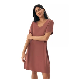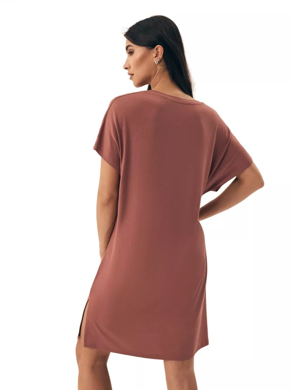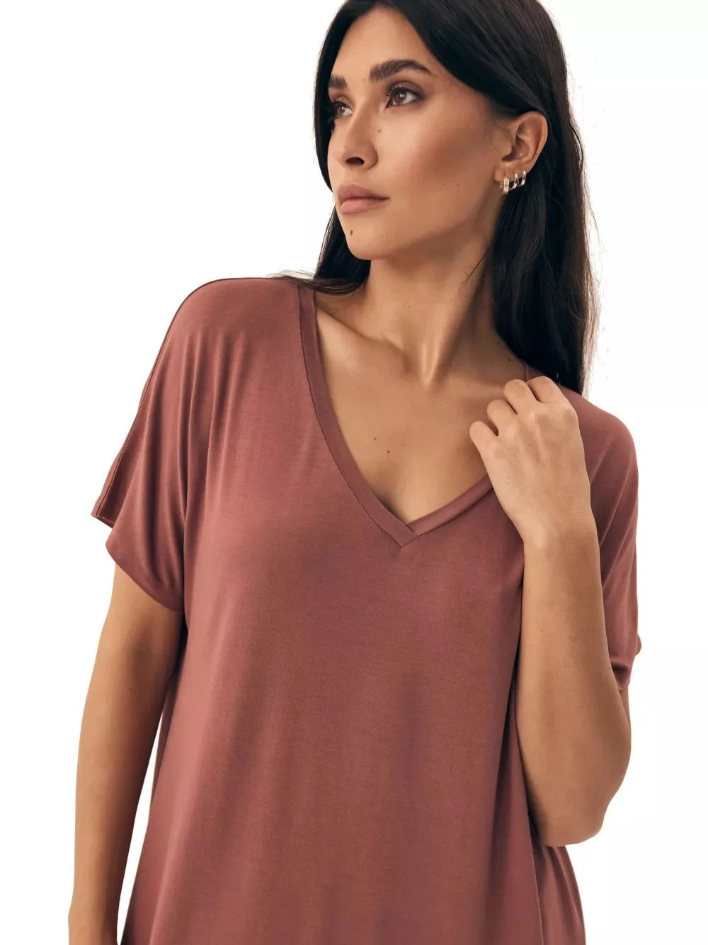 Dámská noční košilka 43041 Noves brown HENDERSON - hnědá barva - z vysoce jakostní viskózy - krátké rukávy - výstřih ve tvaru V - volný střih
