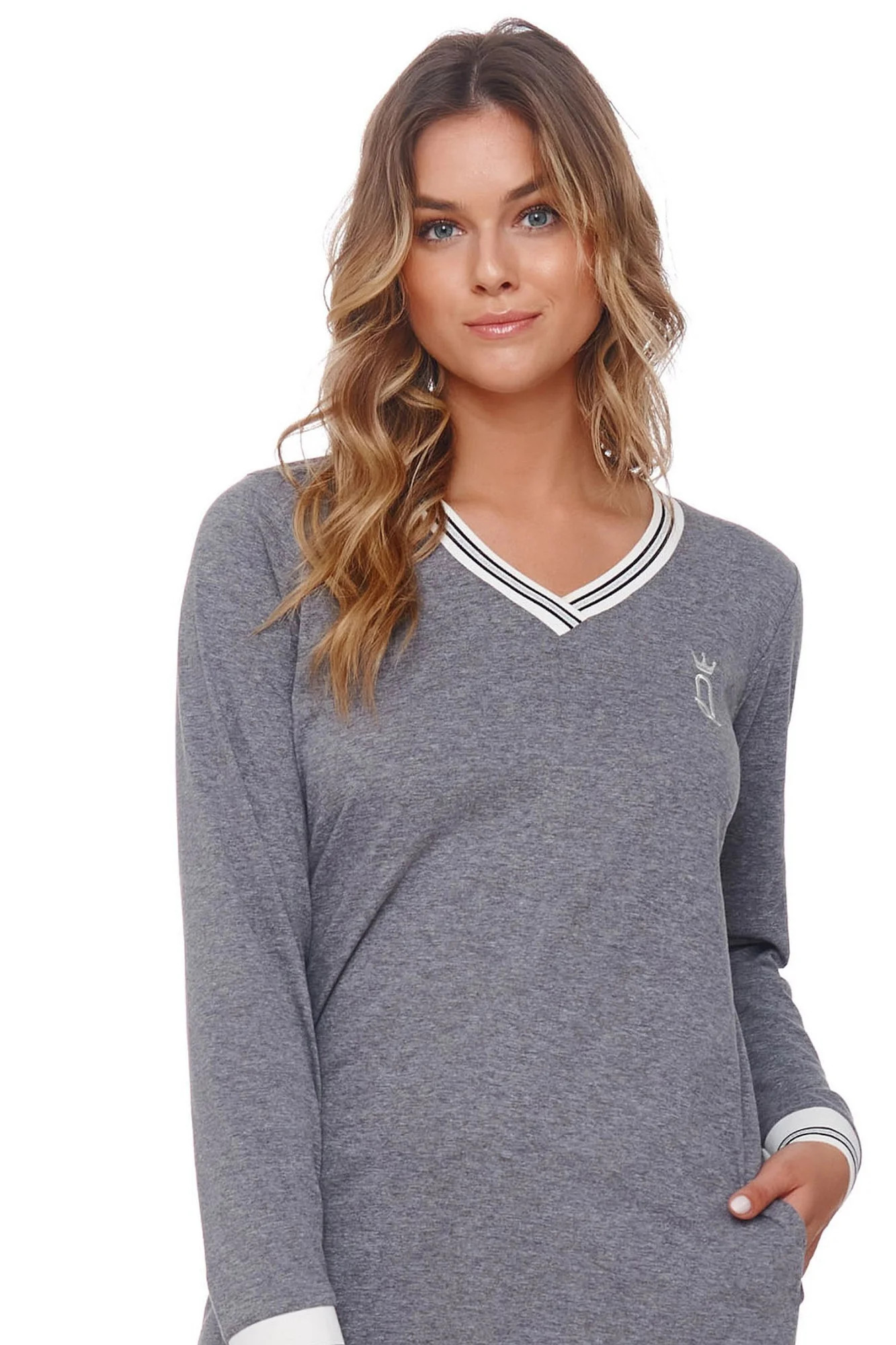 Noční košile 4534 grey Doctornap - šedá barva - vyrobená z velmi kvalitní a příjemné bavlny - s dlouhými rukávy - na přední straně zdobené potiskem - výstřih s ozdobným lemováním - certifikát OEKO-TEX Standard 100