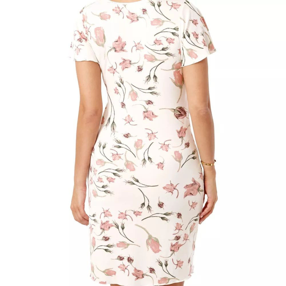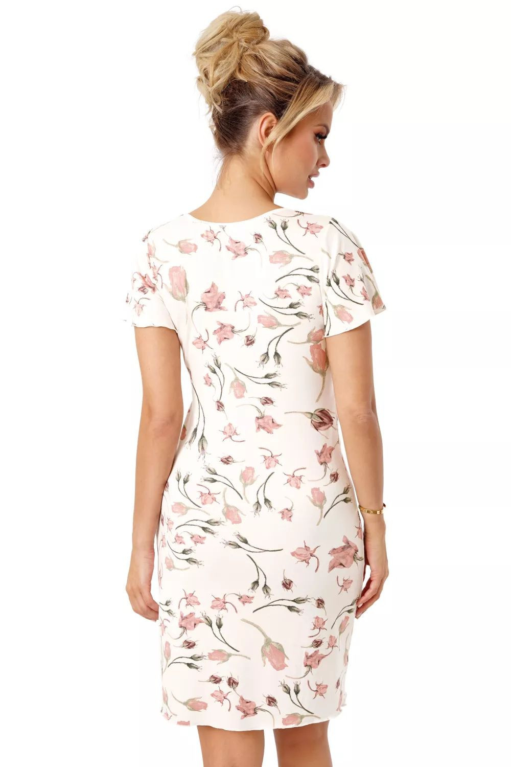 Dámská noční košilka Amaris Donna - krémová barva - s květinovým potiskem - z vysoce jakostní viskózy - krátké rukávy - výstřih zdobený krajkou - jemné řasení pod prsy