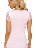 Dámská noční košilka Amelia Donna - růžová barva - z vysoce jakostní viskózy - krátké rukávy - dekolt a rukávy zdobené výšivkou s květinovým motivem