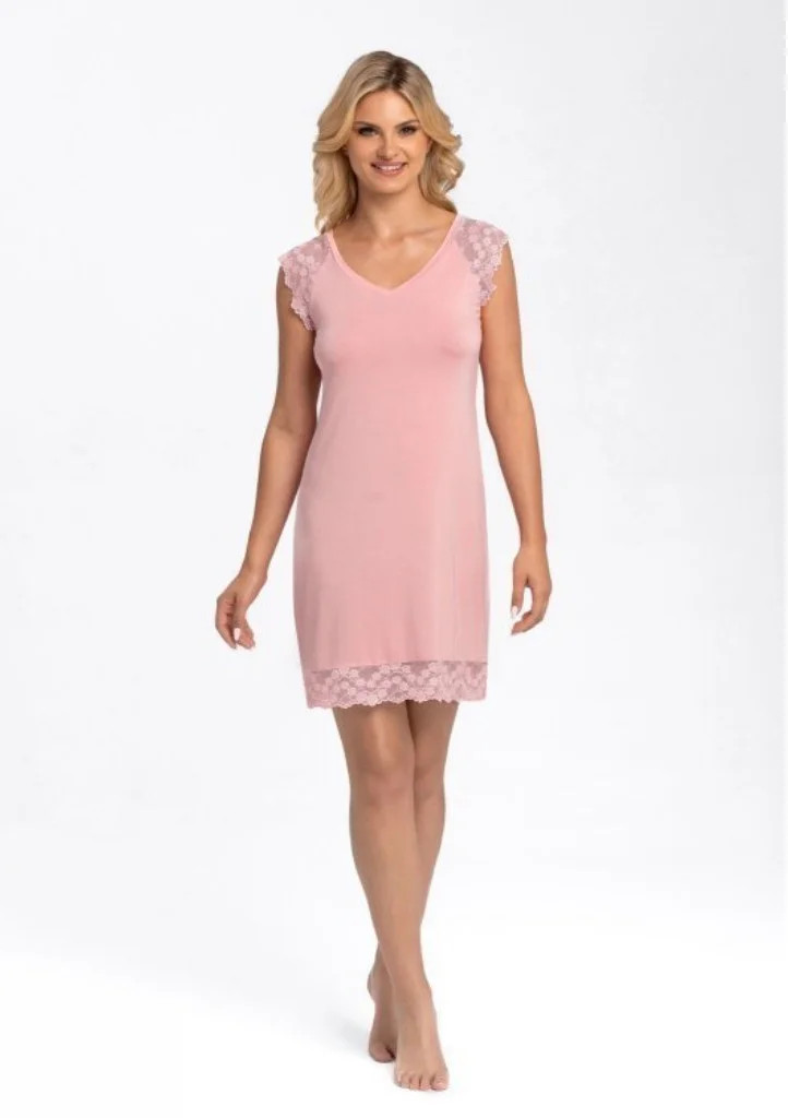 Dámská noční košilka od značky Babella. Chcete zapůsobit na Vašeho partnera ve Vašem nočním oděvu? Košilka Babella je ušita v elegantním střihu z jemného viskózového materiálu. Košilka má výstřih do "V", okolí ramen je lemováno jemnou krajkou, stejně jako spodní přední část košilky.,p/>