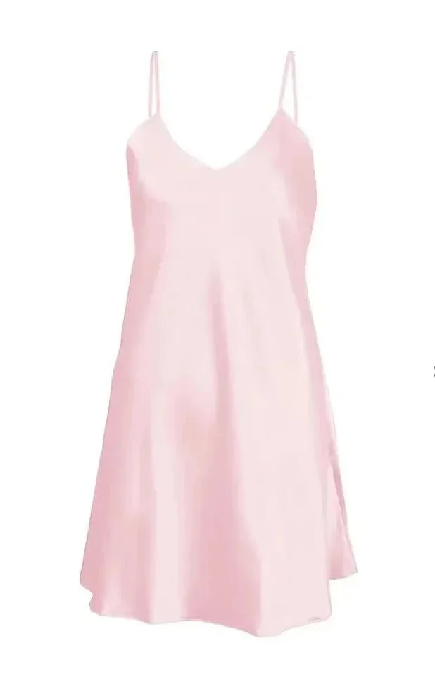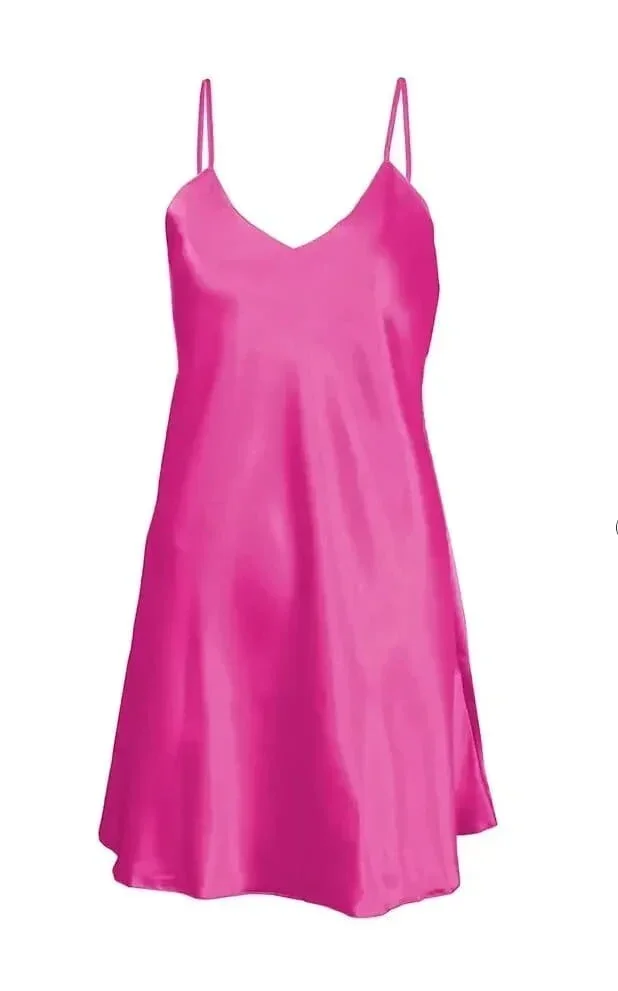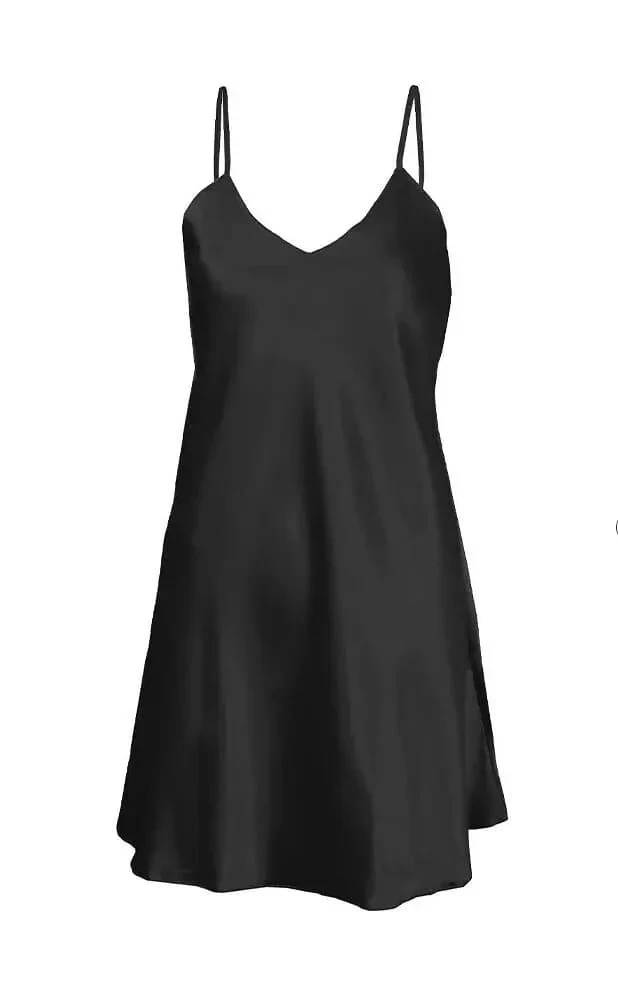 Krátká dámská noční saténová košilka DKaren Karen na tenkých ramínkách s možností regulace.