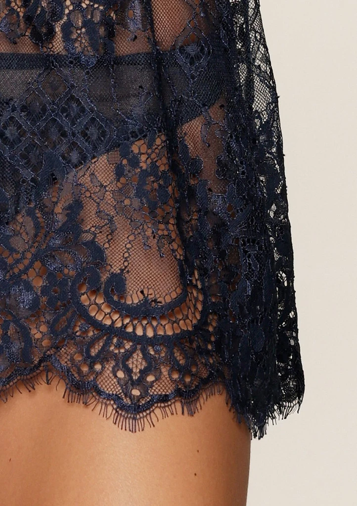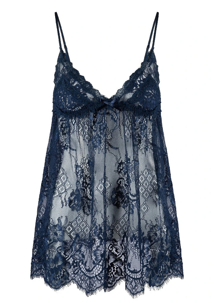 Elegantní krajková košilka LingaDore v odstínu Midnight Blue působí jemně, smyslně a naprosto ženským dojmem. Celá je vyrobena z luxusní průsvitné krajky s propracovanými detaily, které krásně zvýrazní siluetu. Jemná saténová mašlička pod prsy dodává modelu romantický dotek, zatímco nastavitelné tenké ramínka zaručí perfektní padnutí. Lehký a vzdušný střih volně splývá po těle a vytváří neodolatelně svůdný vzhled. Ideální volba pro speciální chvíle i jako elegantní doplněk vaší noční garderoby.