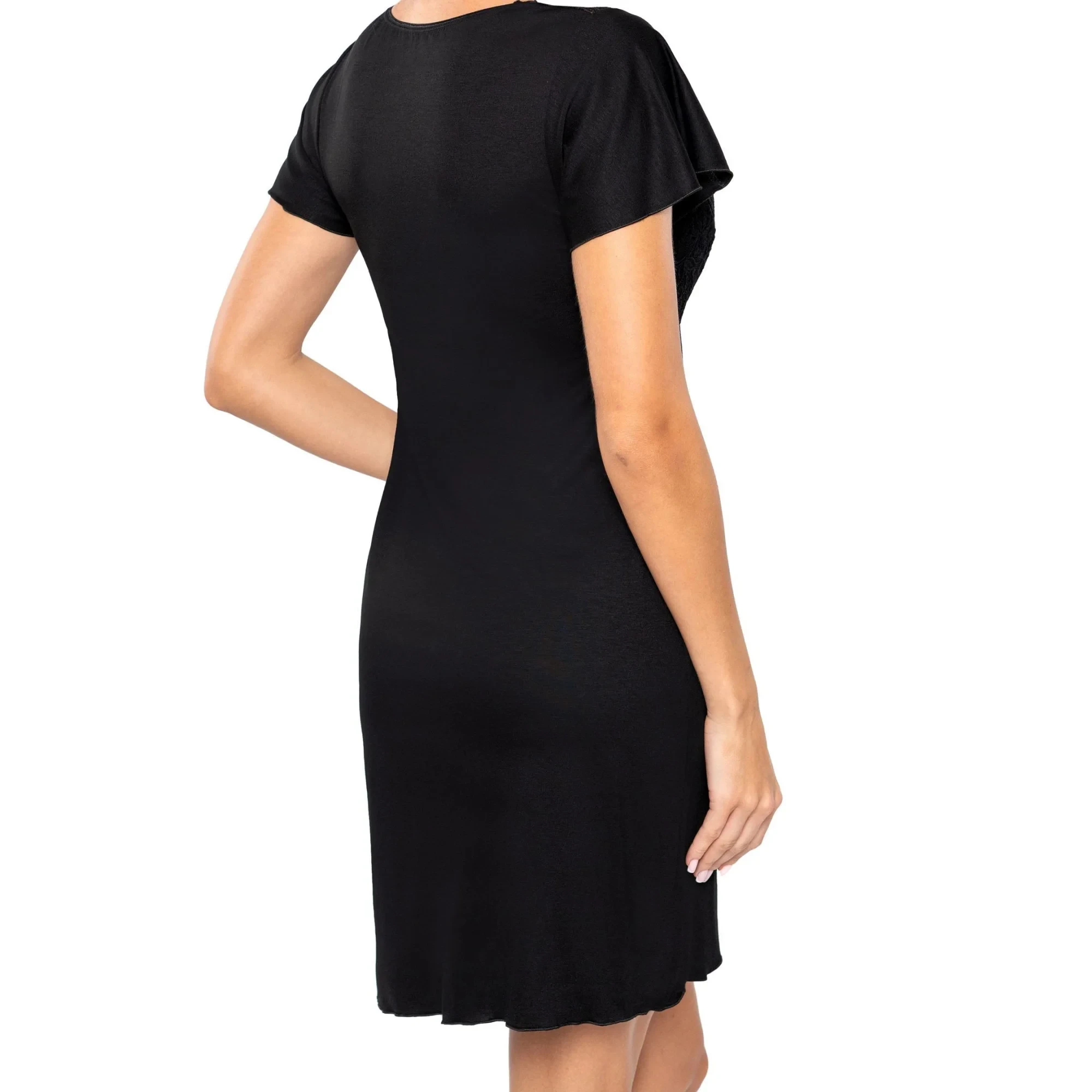 Dámská noční košilka Luiza black Donna - černá barva - z vysoce jakostní viskozy - krátké rukávy - výstřih zdobený krajkovou výšivkou