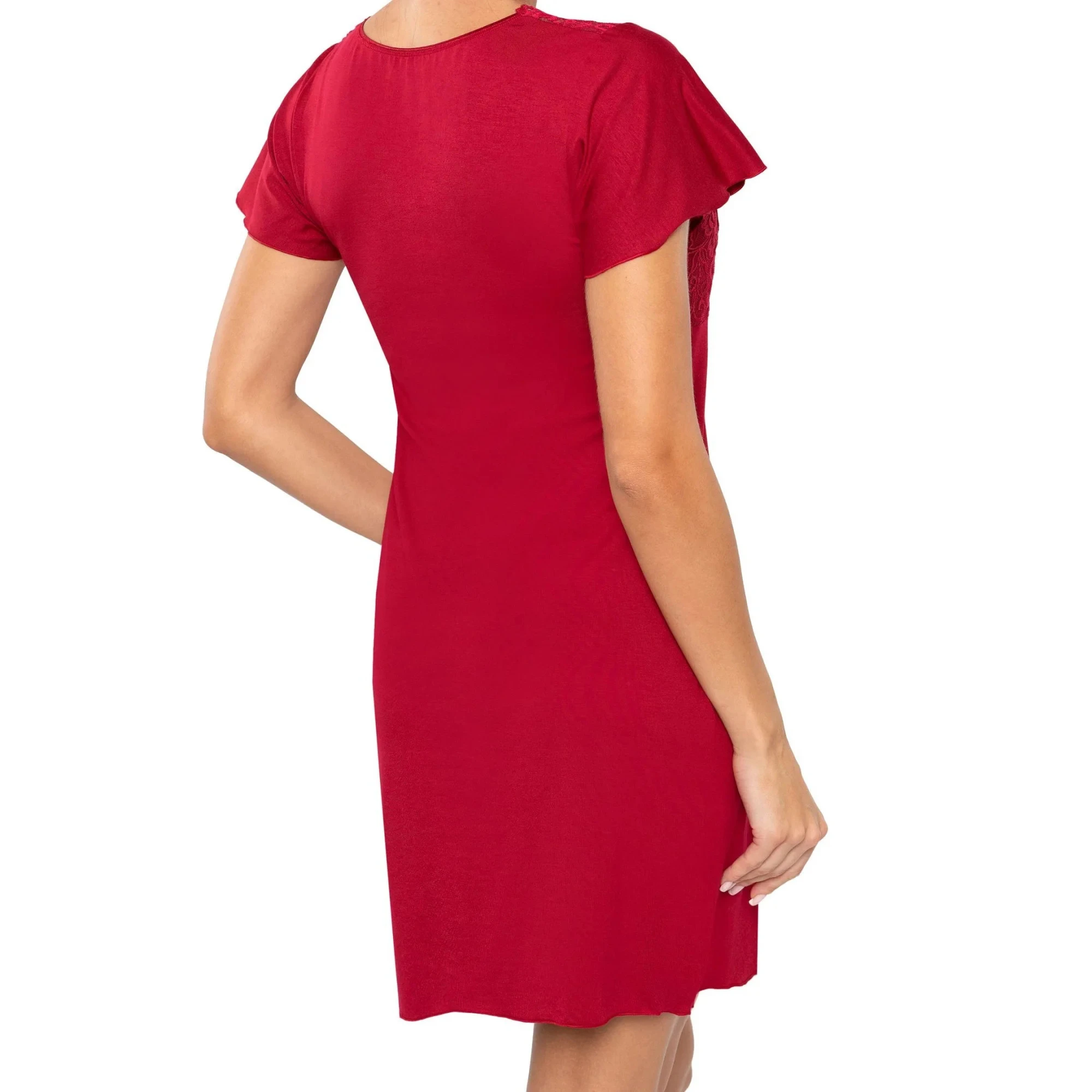 Dámská noční košilka Luiza wine Donna - bordó barva - z vysoce jakostní viskozy - krátké rukávy - výstřih zdobený krajkovou výšivkou